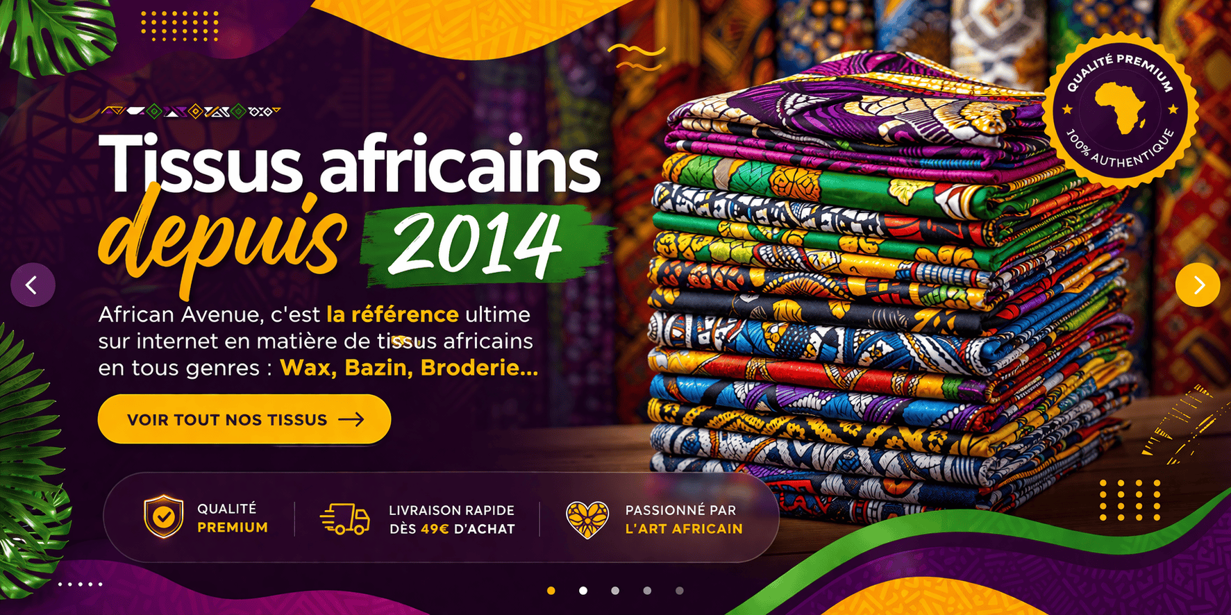 Votre destination en ligne pour découvrir l'univers riche et coloré des tissus africains. Notre boutique vous propose une large sélection de tissus Wax, Bazin, Bogolan, et bien d'autres, pour donner vie à vos projets de couture.