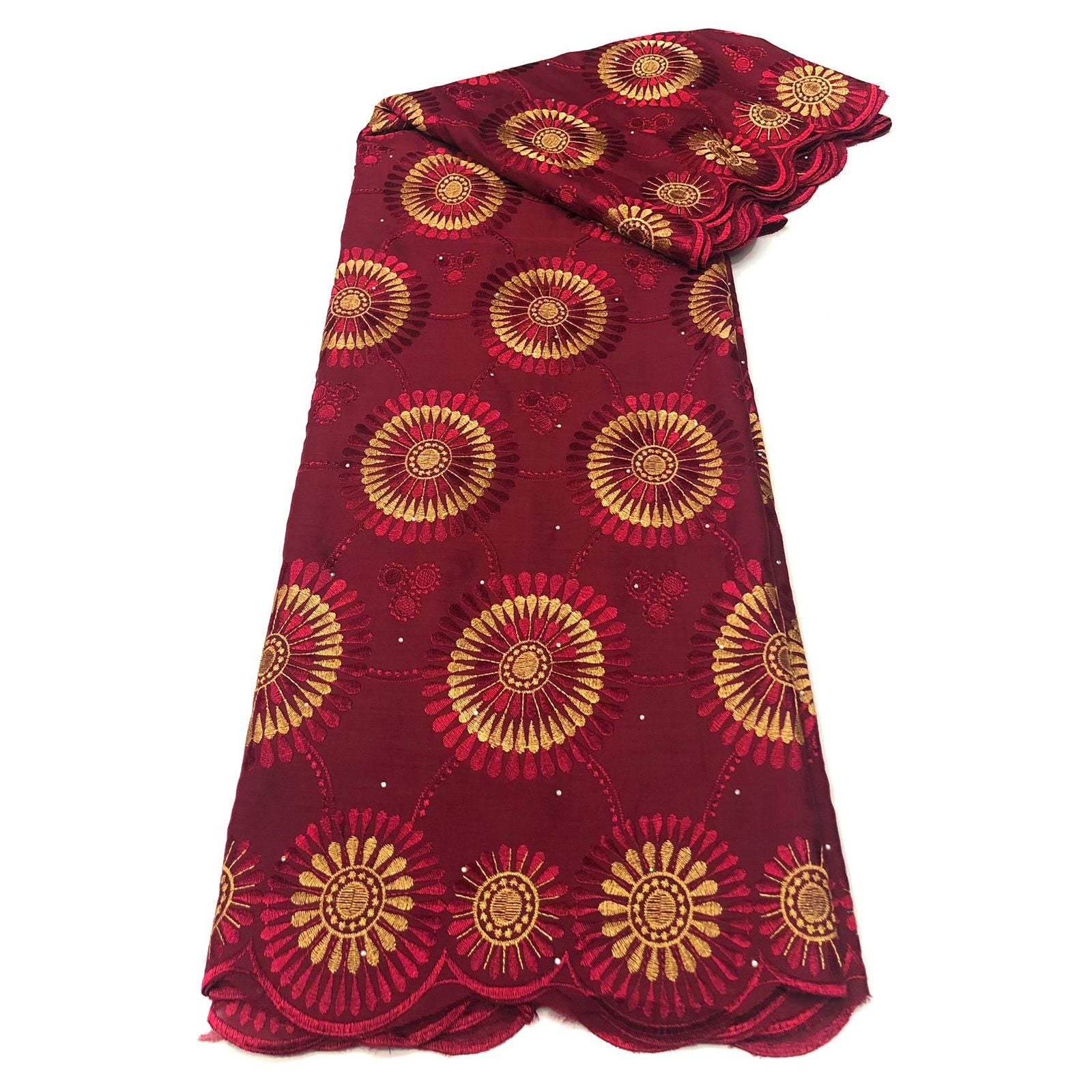 Embroidered SWISS LACE type embroidery - African fabric 5 Yards - BORDEAUX / GOLD GOLD