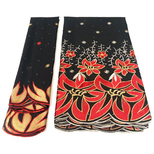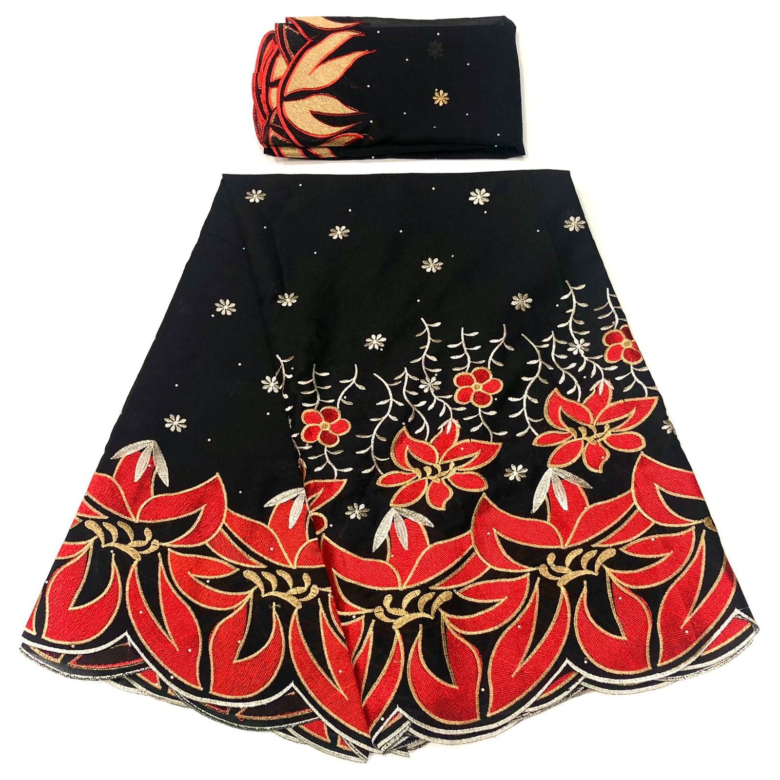 Embroidered 2 pieces with SHAWL type SWISS LACE - African Fabric 5 + 2 Yards - BLACK / RED