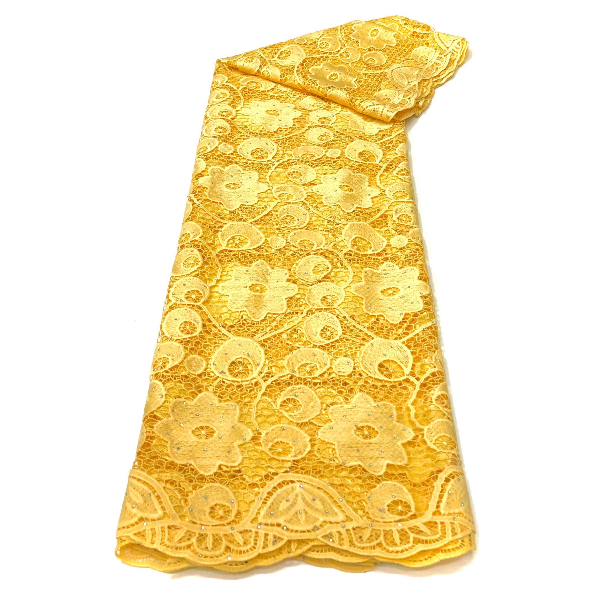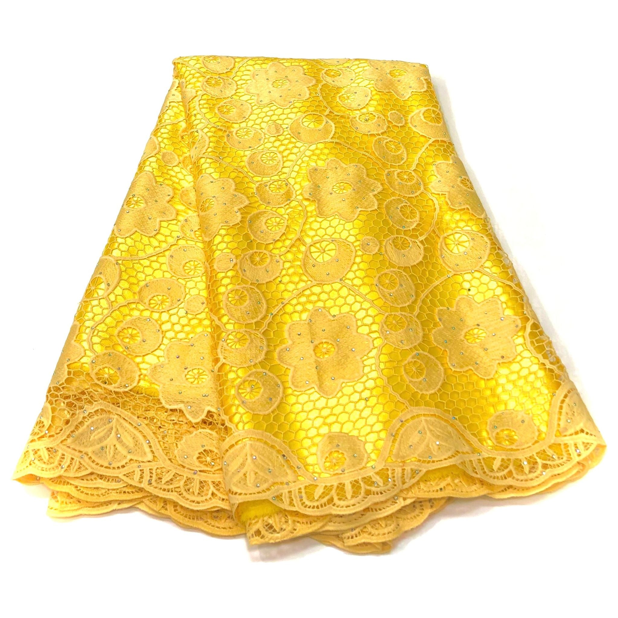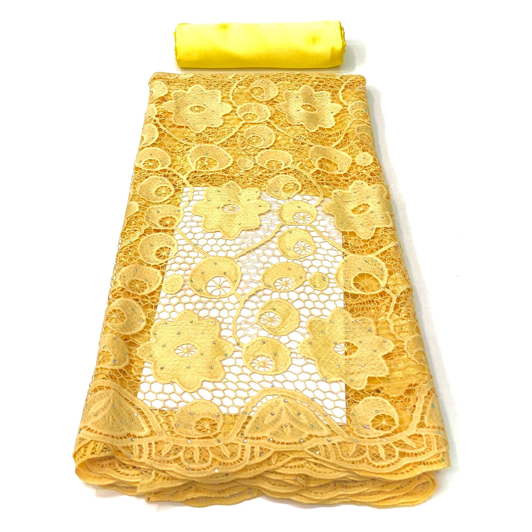 African Embroidery Guipure Lace - 4 Yards Cotton Fabric - YELLOW