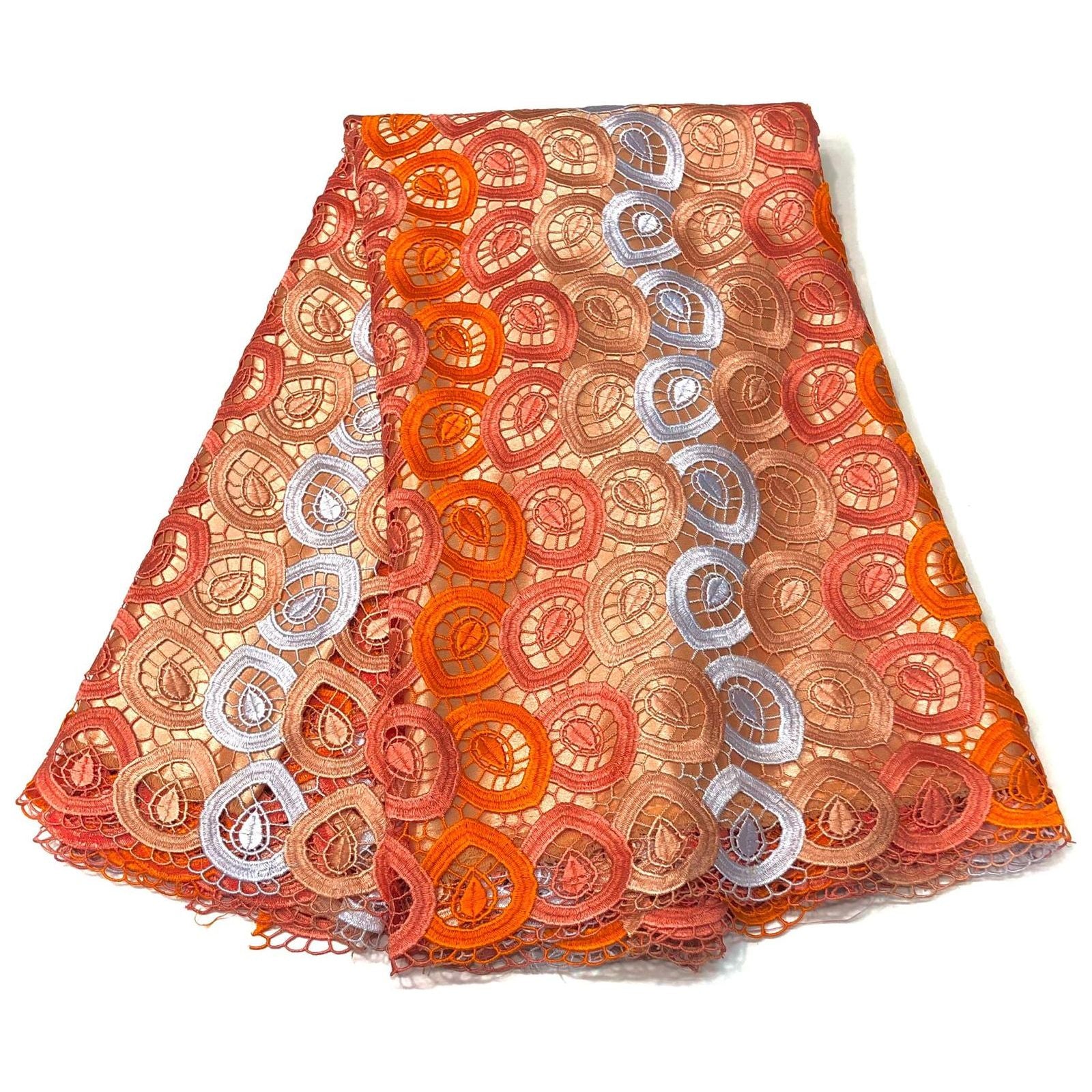 African Embroidery Guipure Lace - 4 Yards Cotton Fabric - ORANGE / SALMON