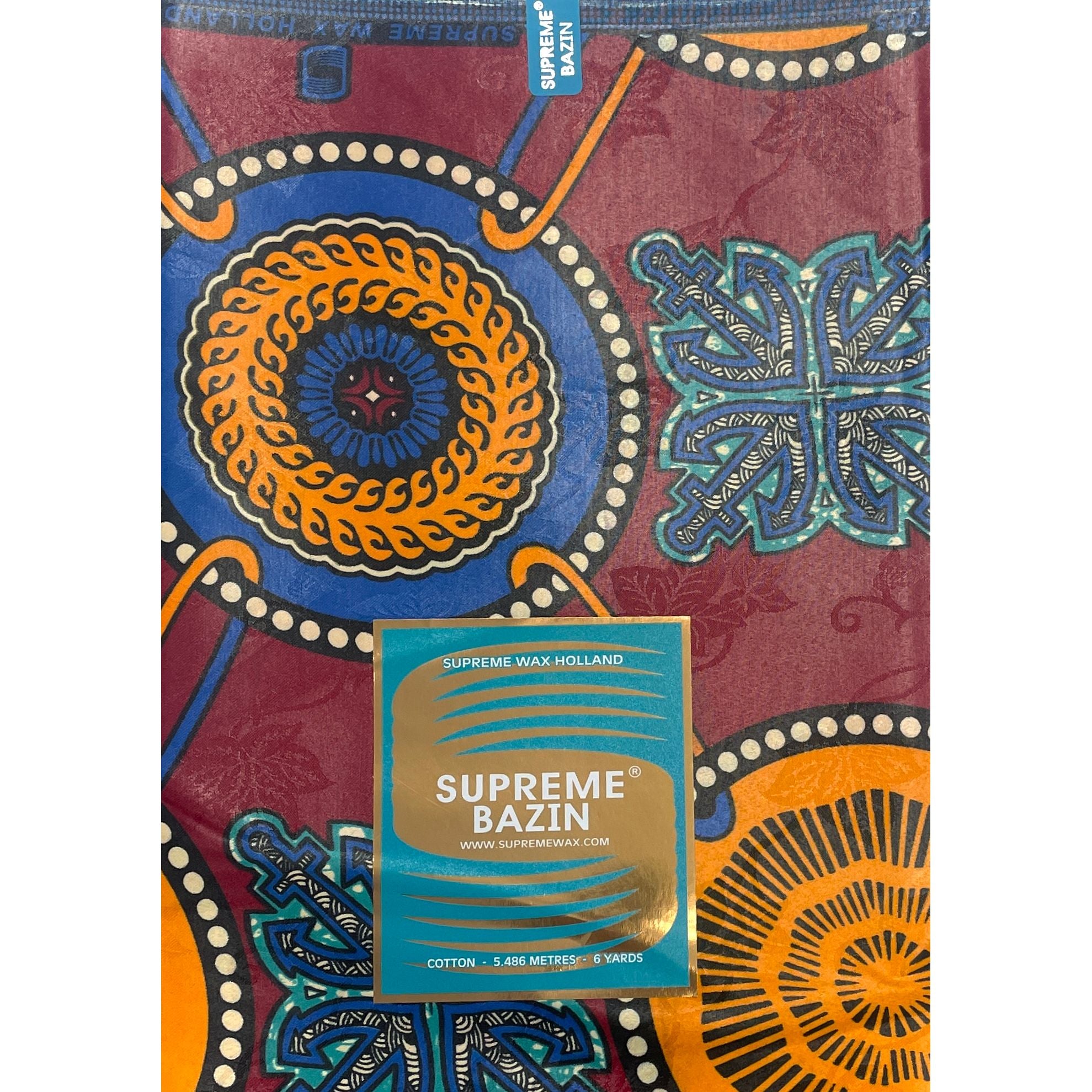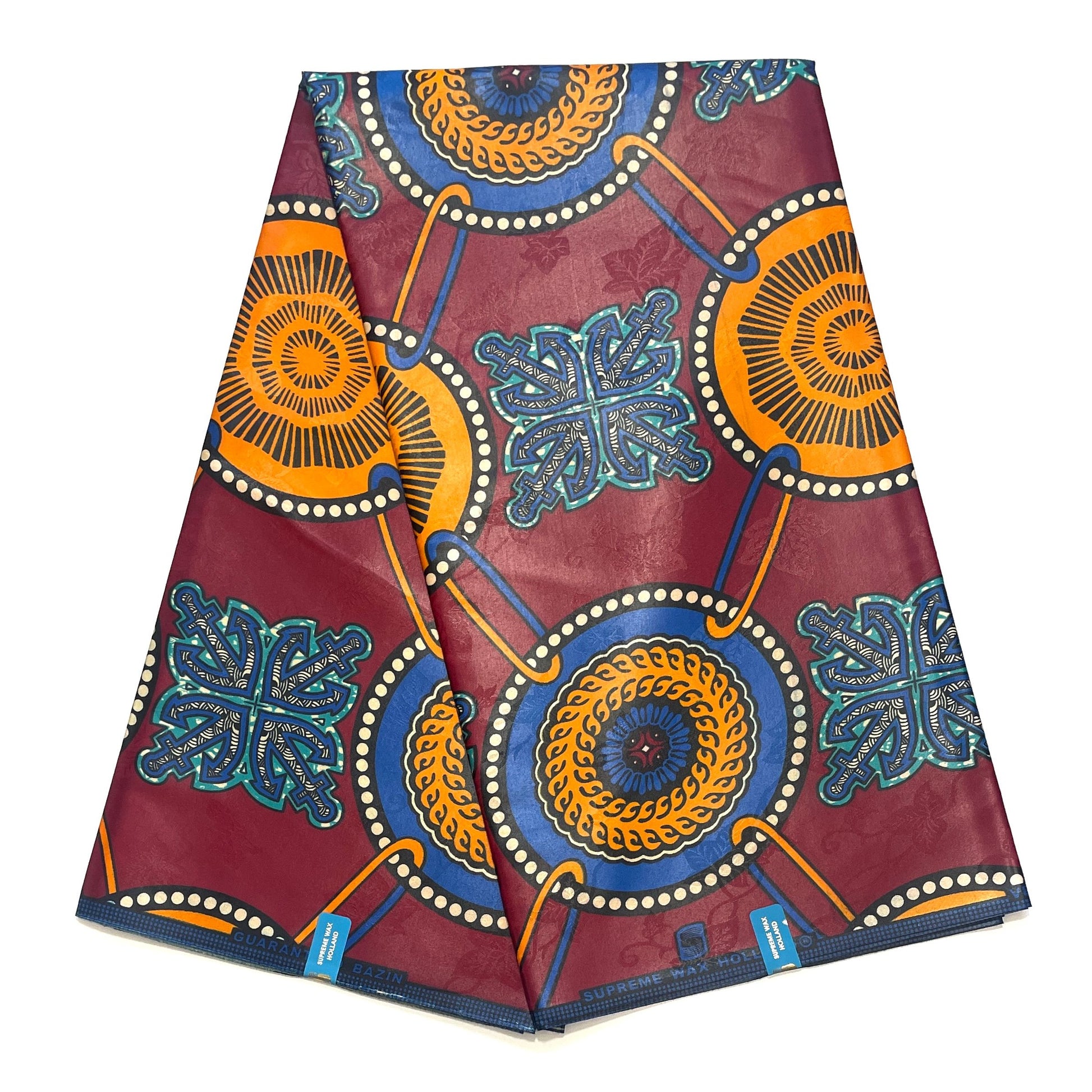 Supreme Bazin Wax Pagne Africain - Tissu 6 Yards Coton - ROUGE BORDEAUX