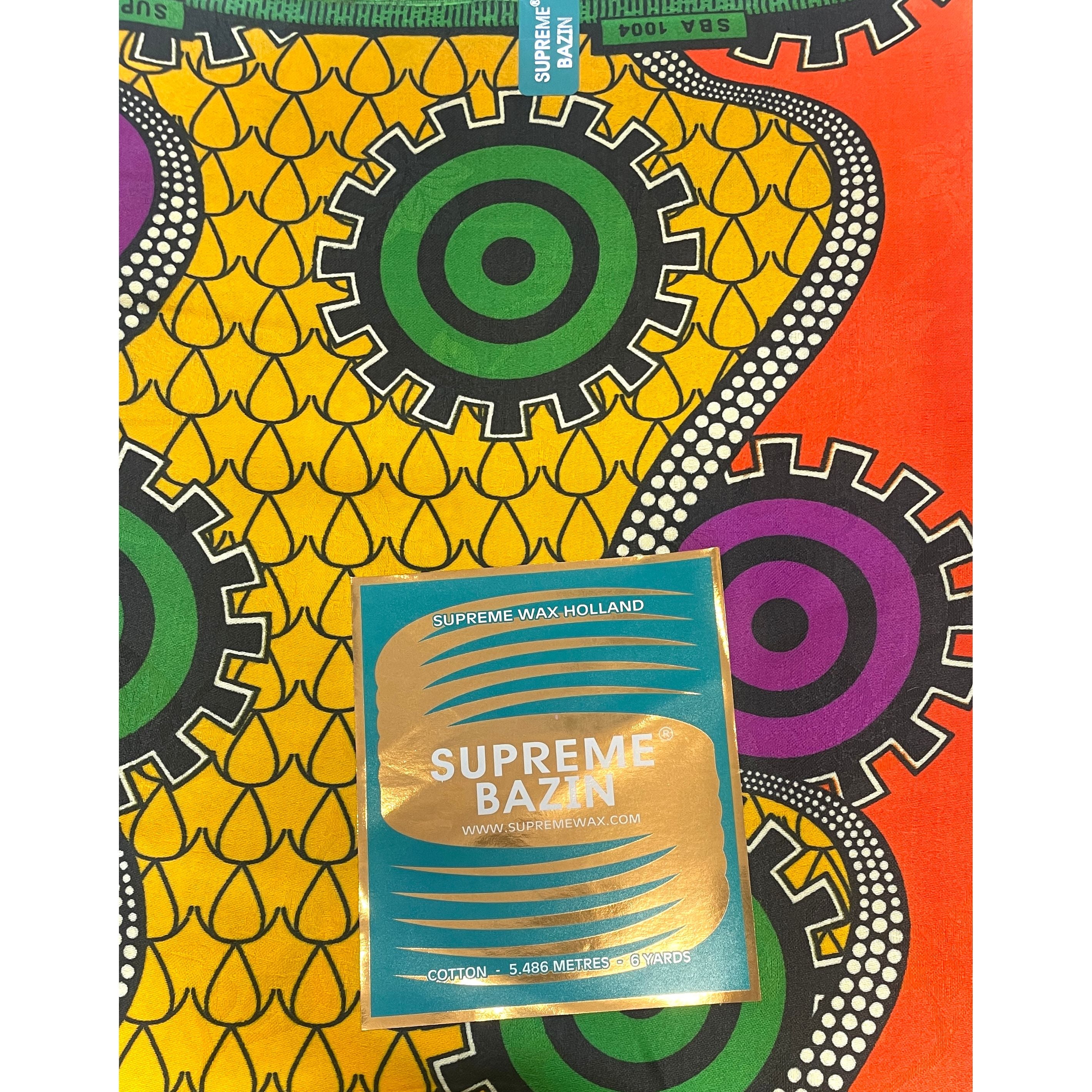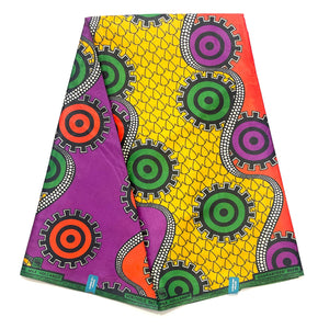 Supreme Bazin Wax Pagne Africain - Tissu 6 Yards Coton - VIOLET / JAUNE / ORANGE