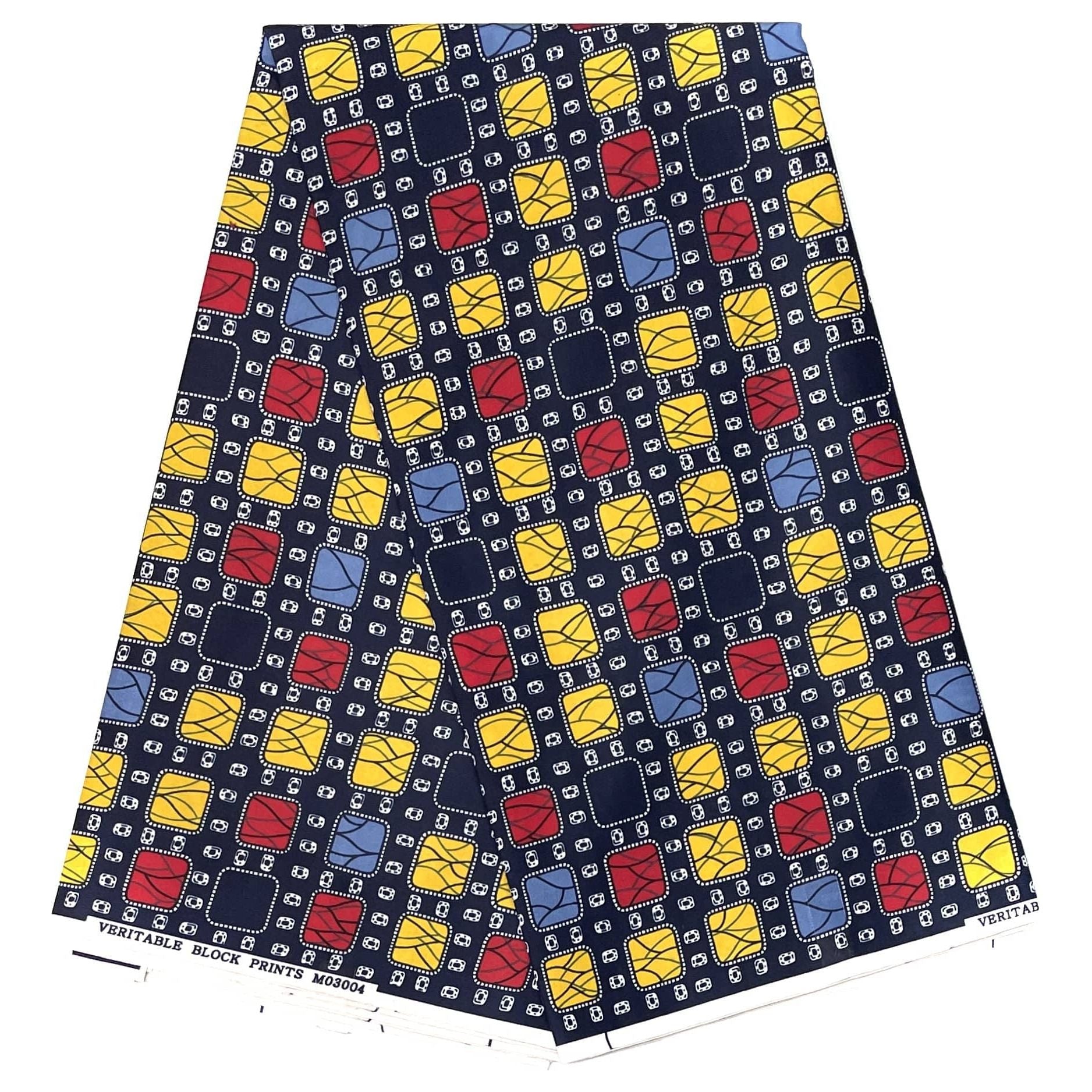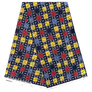 African Wax Pagne - 6 Yards POLYESTER Fabric - BLUE / YELLOW