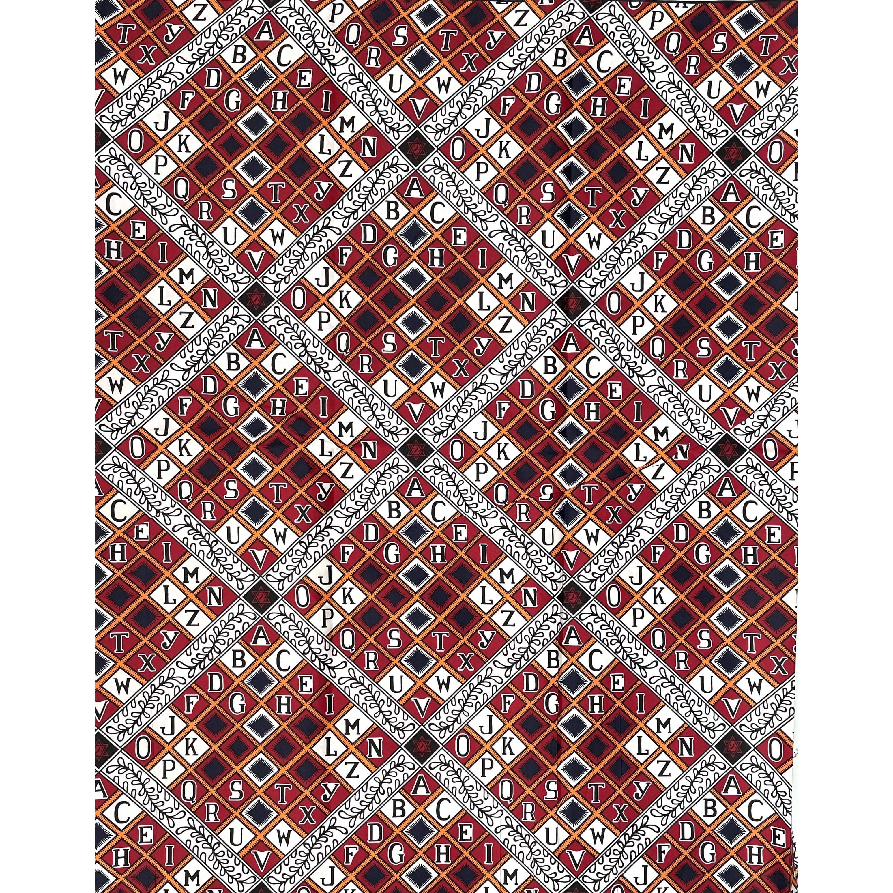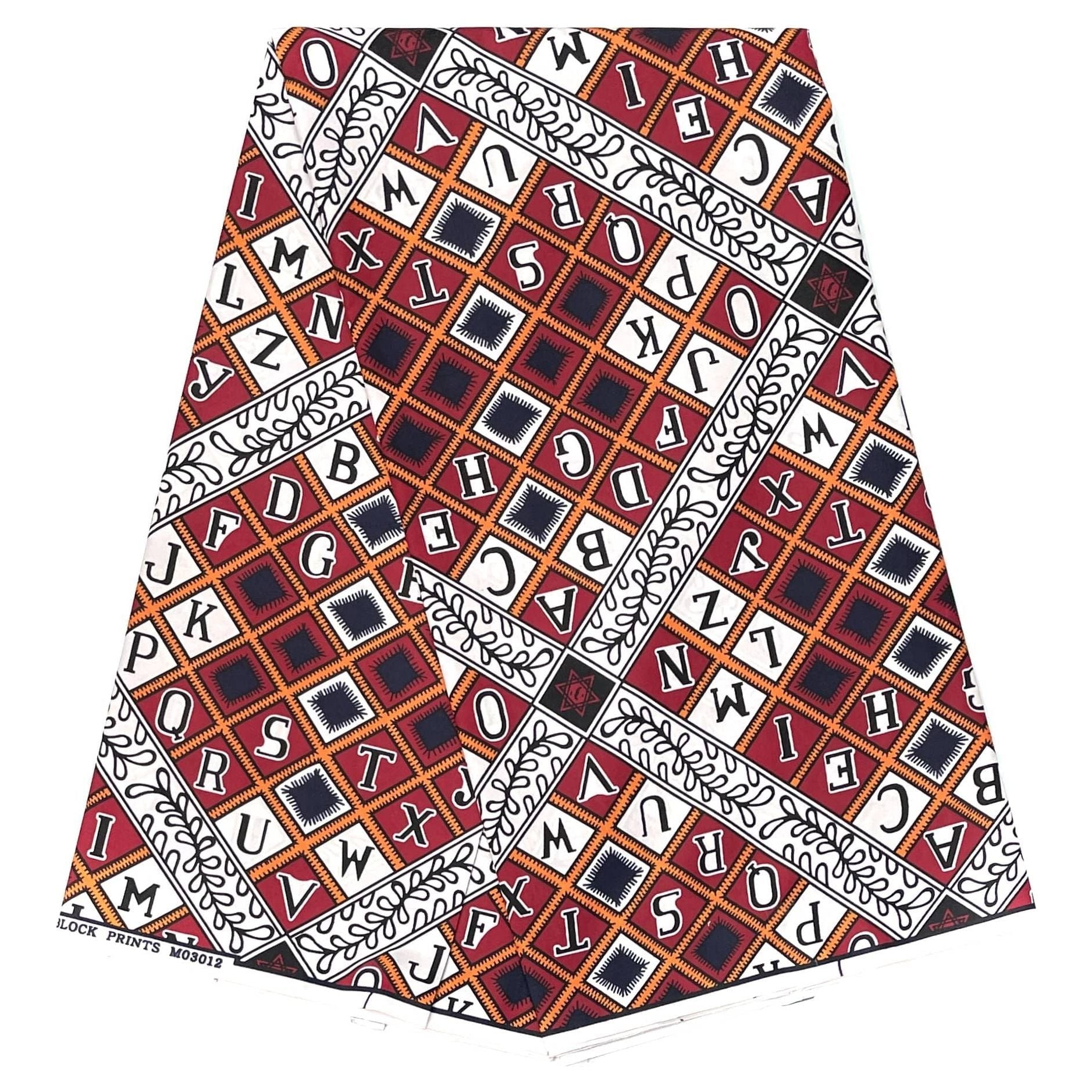 African Wax Pagne - 6 Yards POLYESTER Fabric - WHITE / RED