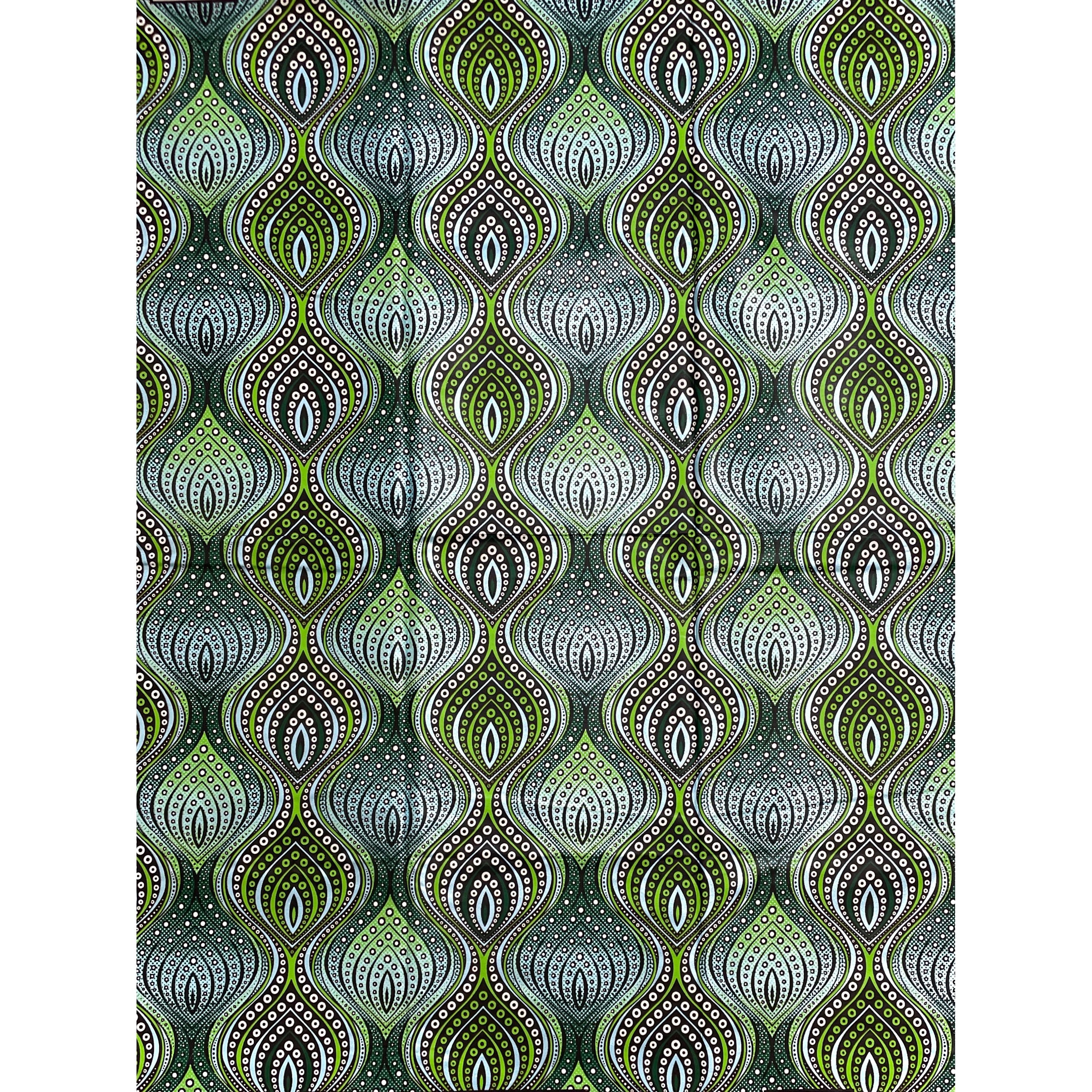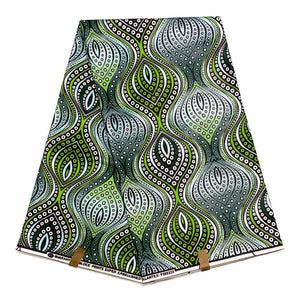 Wax Pagne Africain - Tissu 6 Yards 100% Coton - ARGENT / VERT