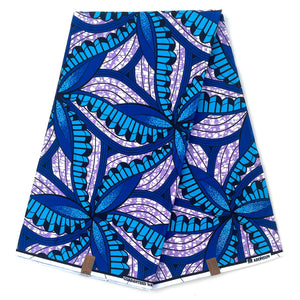 Wax Pagne Africain - Tissu 6 Yards 100% Coton - BLEU / MAUVE