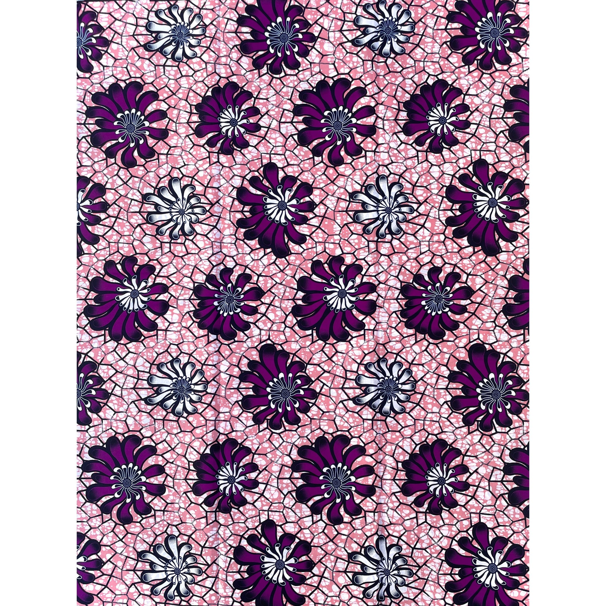 Wax Pagne Africain - Tissu 6 Yards 100% Coton - VIOLET / ROSE