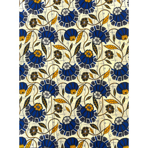 Wax Pagne Africain - Tissu 6 Yards 100% Coton - BEIGE / BLEU