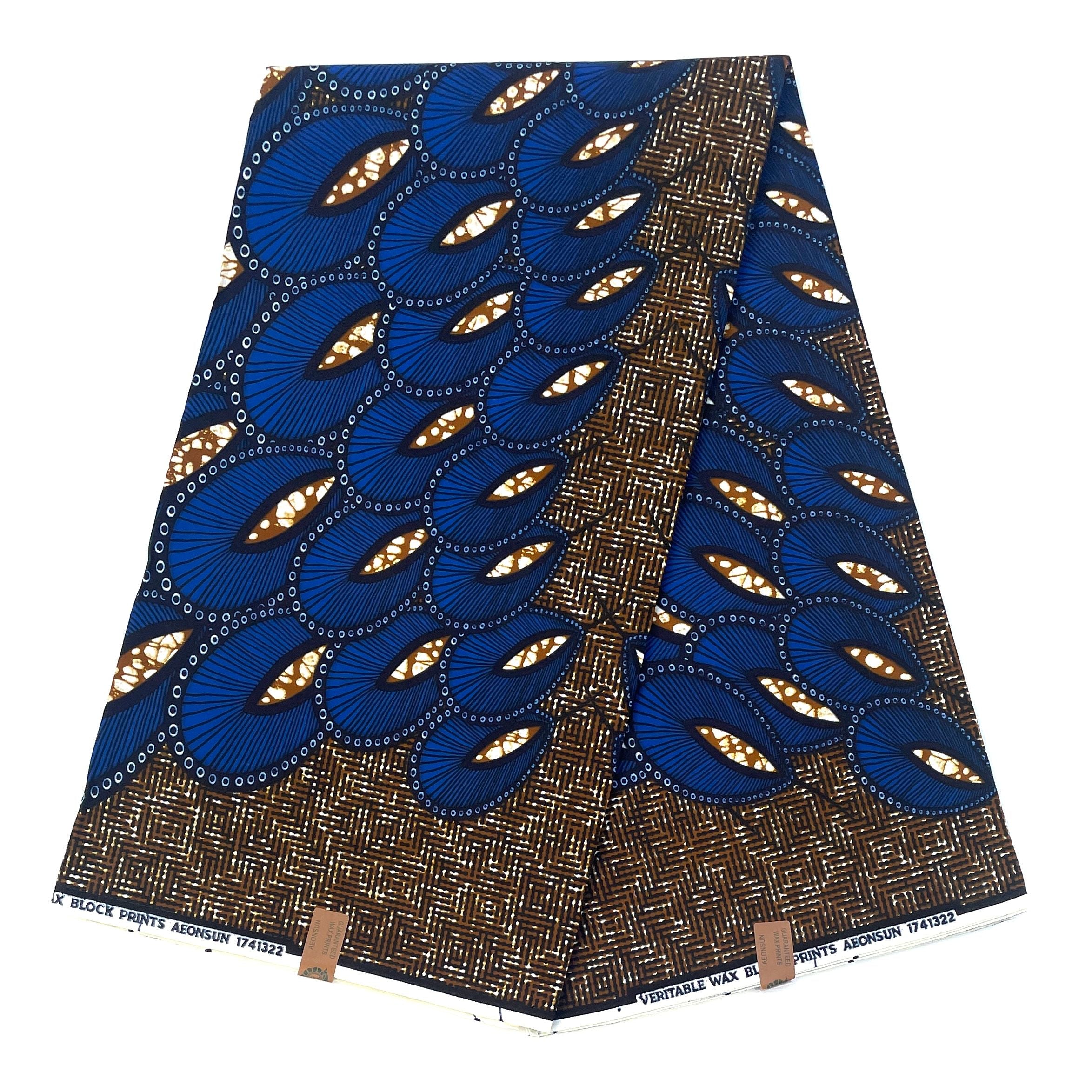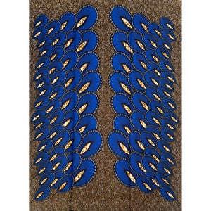 Wax Pagne Africain - Tissu 6 Yards 100% Coton - BLEU / MARRON