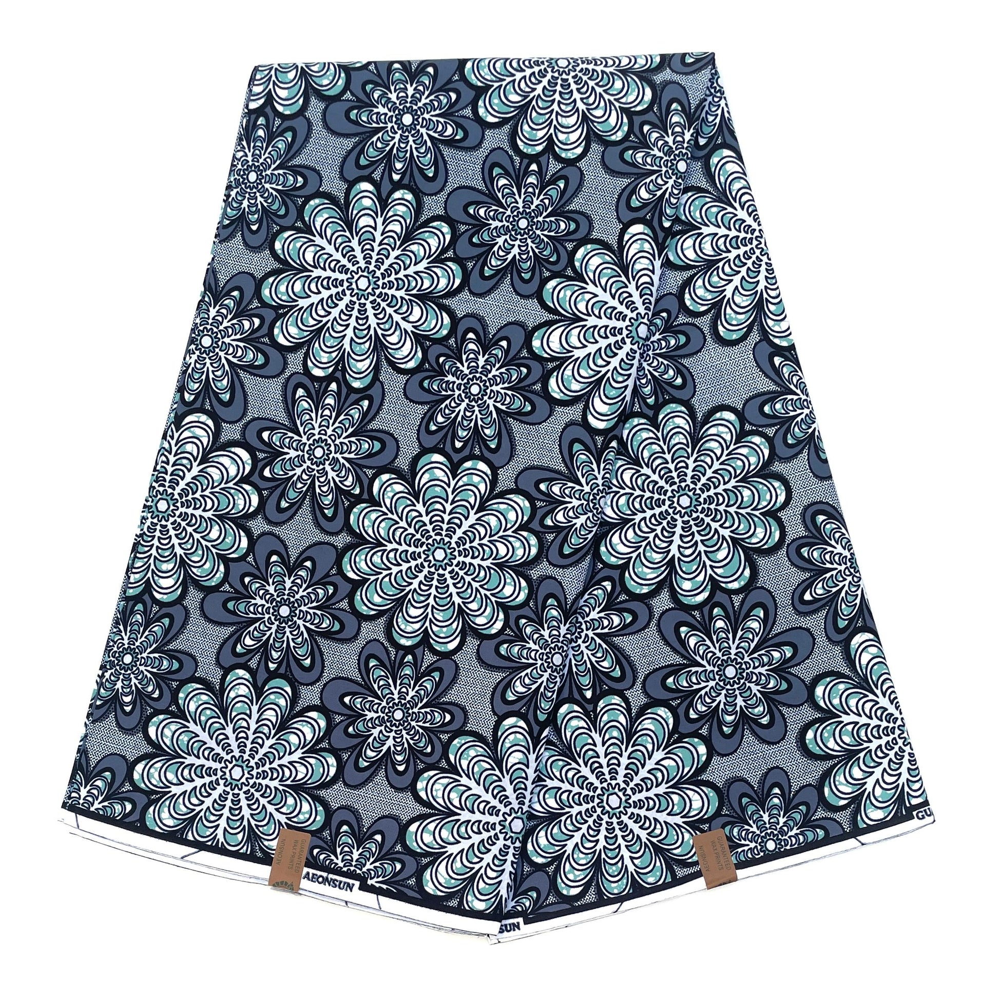 Wax Pagne Africain - Tissu 6 Yards 100% Coton - BLEU / GRIS