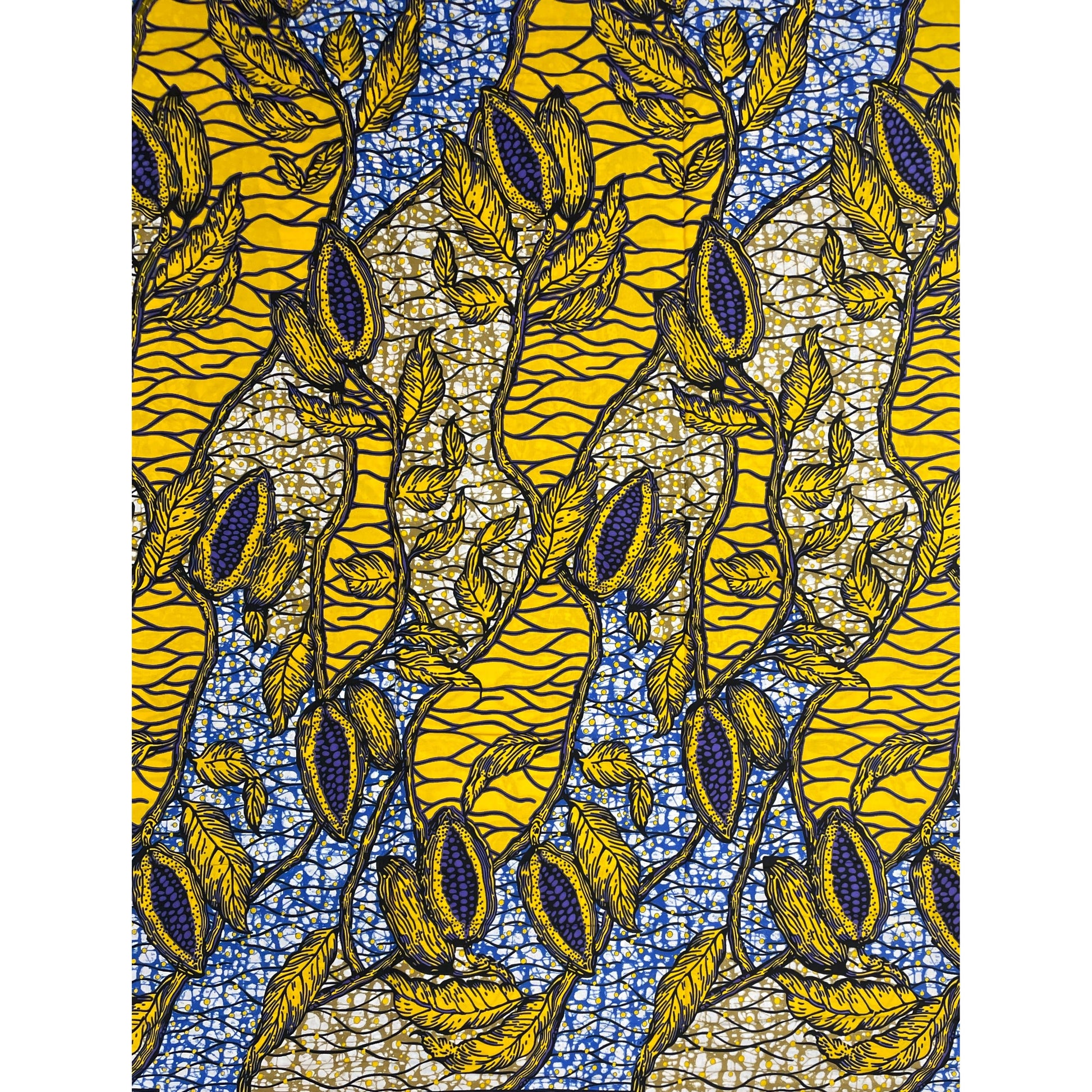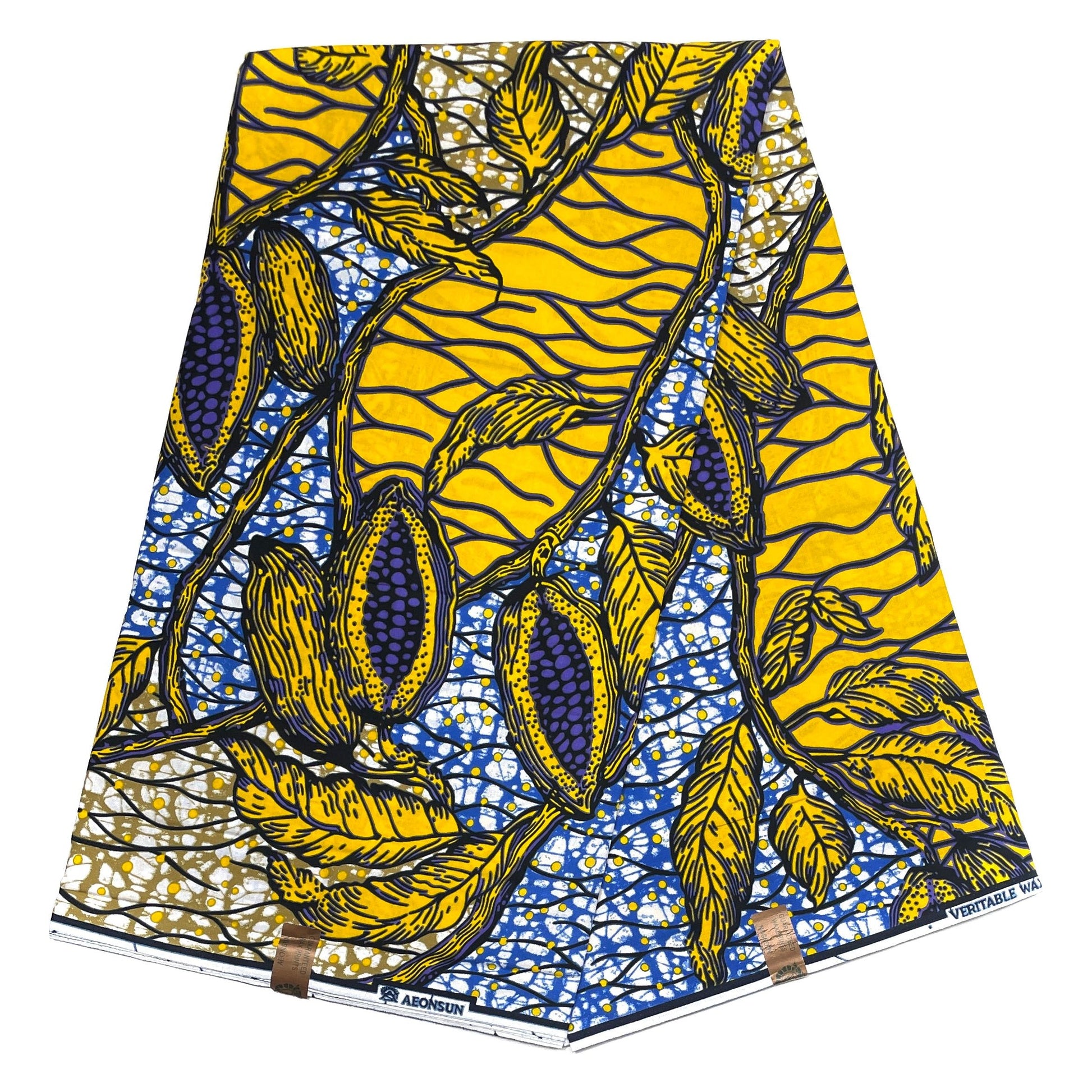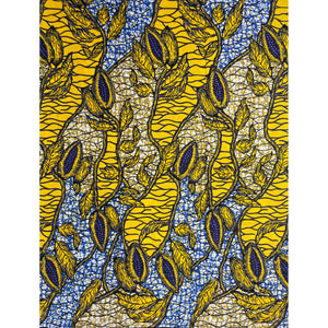 African Wax Pagne - 6 Yards 100% Cotton Fabric - YELLOW / BLUE