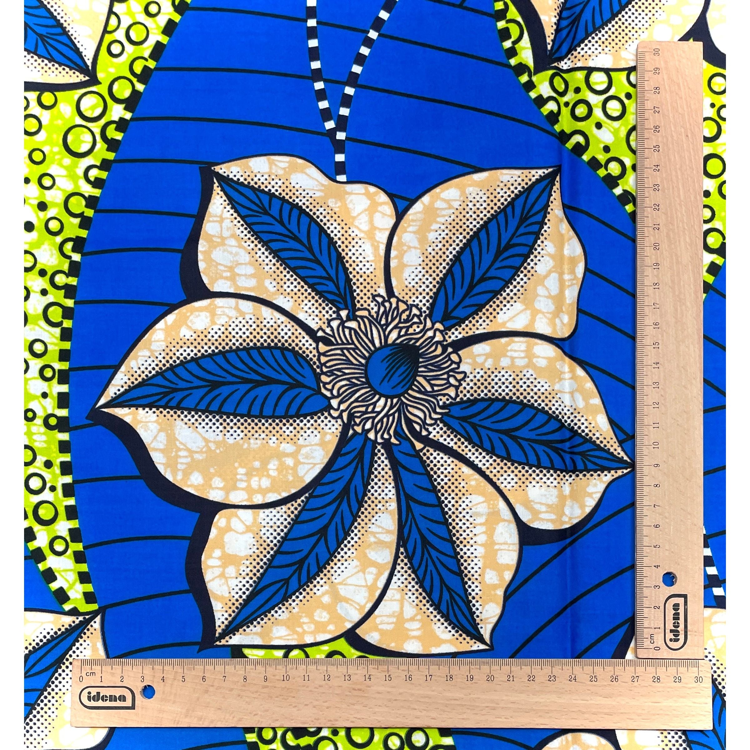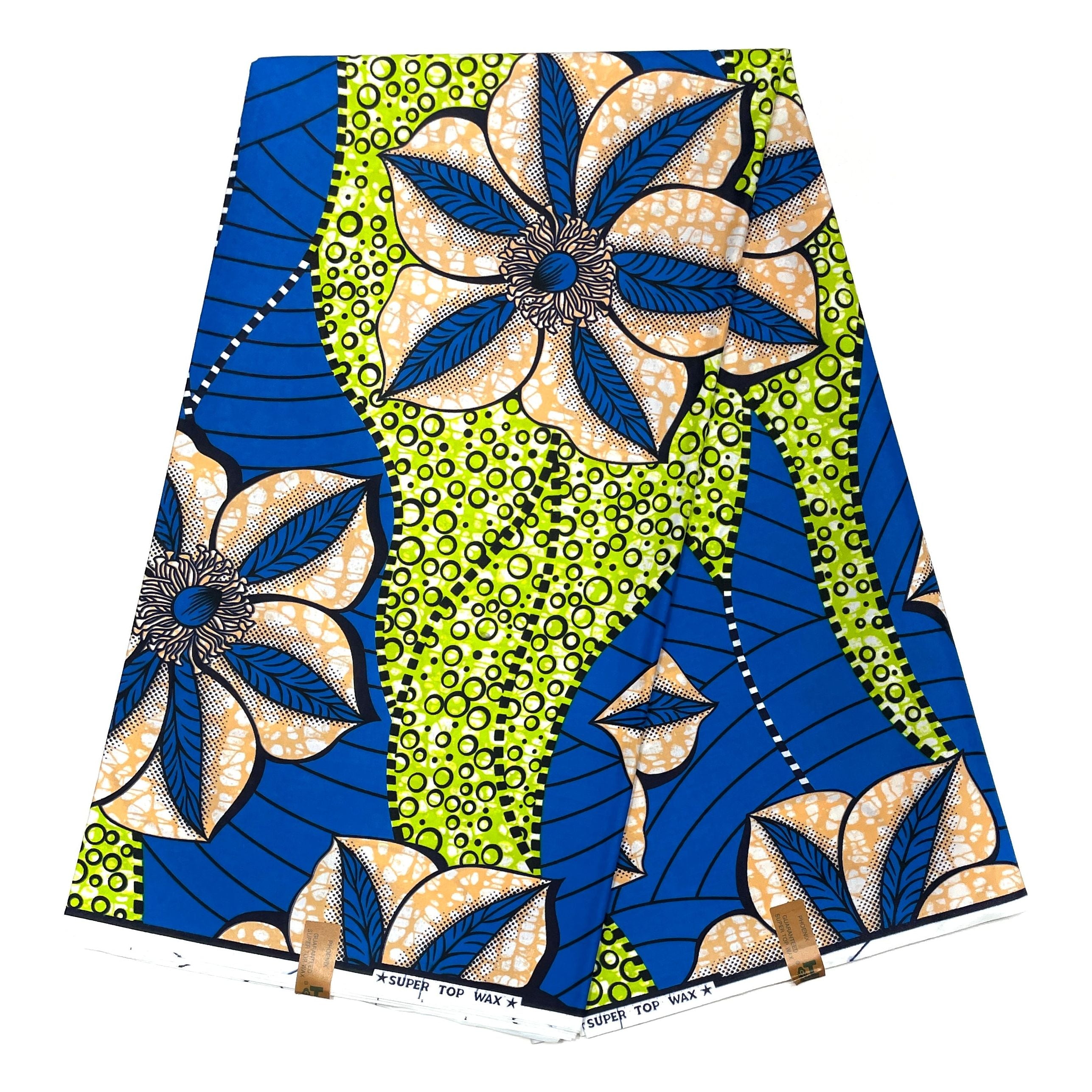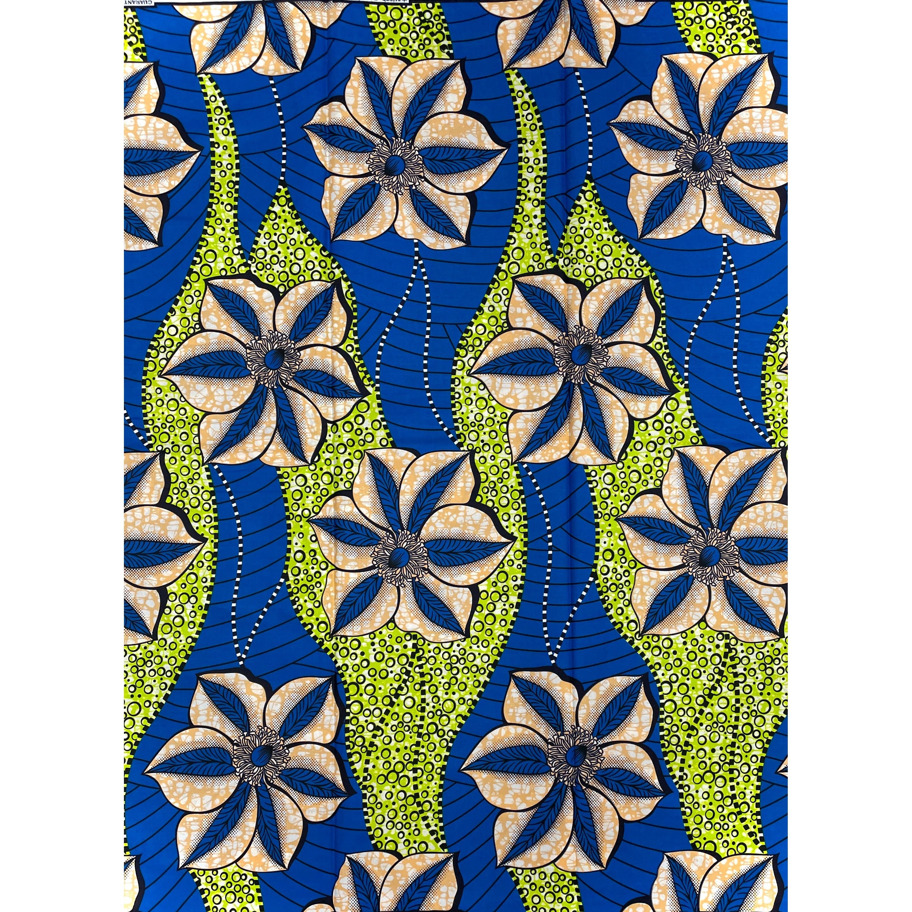 African Wax Pagne - 6 Yards 100% Cotton Fabric - WHITE / BLUE