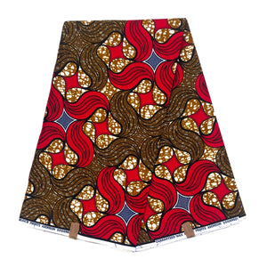 Wax Pagne Africain - Tissu 6 Yards 100% Coton - ROUGE / MARRON