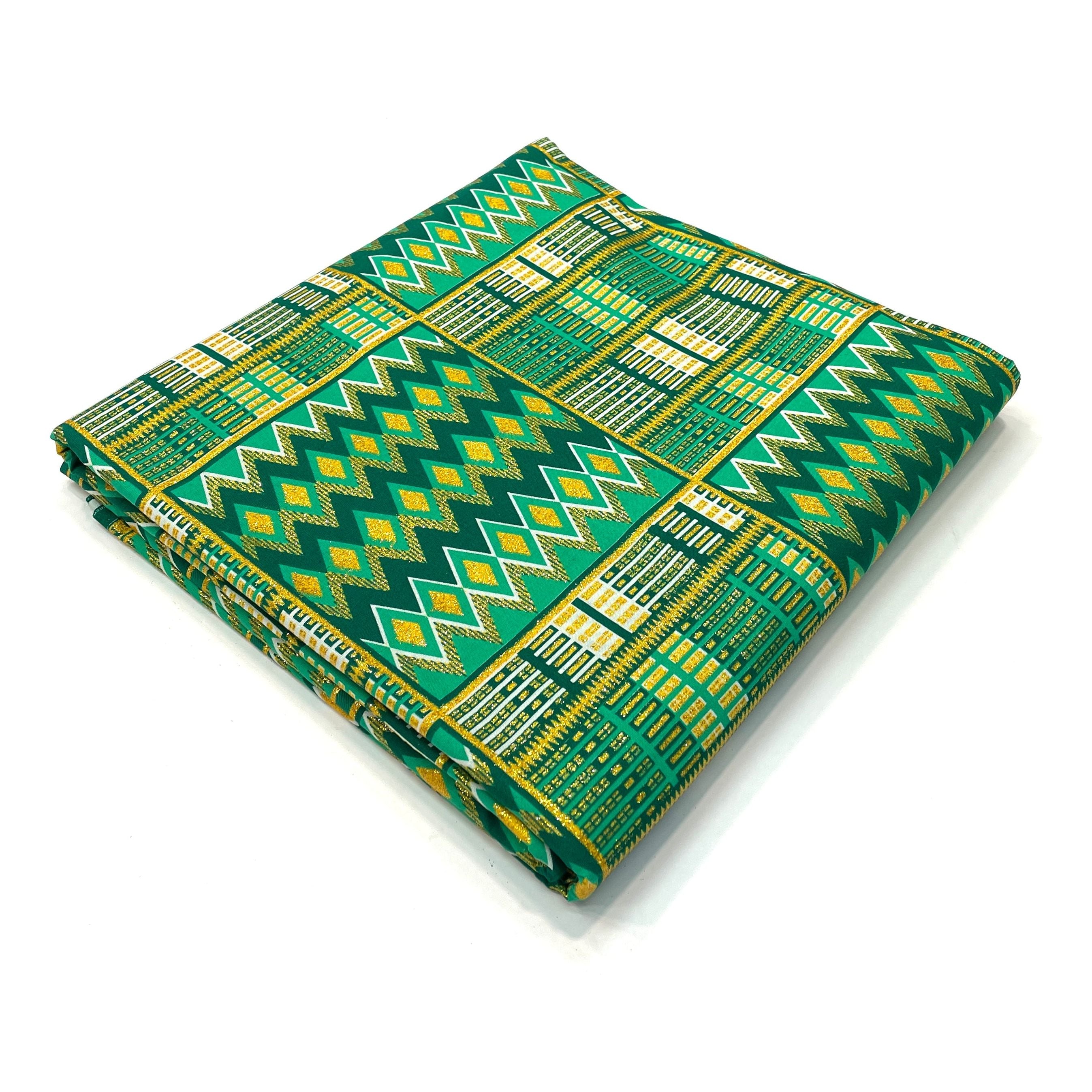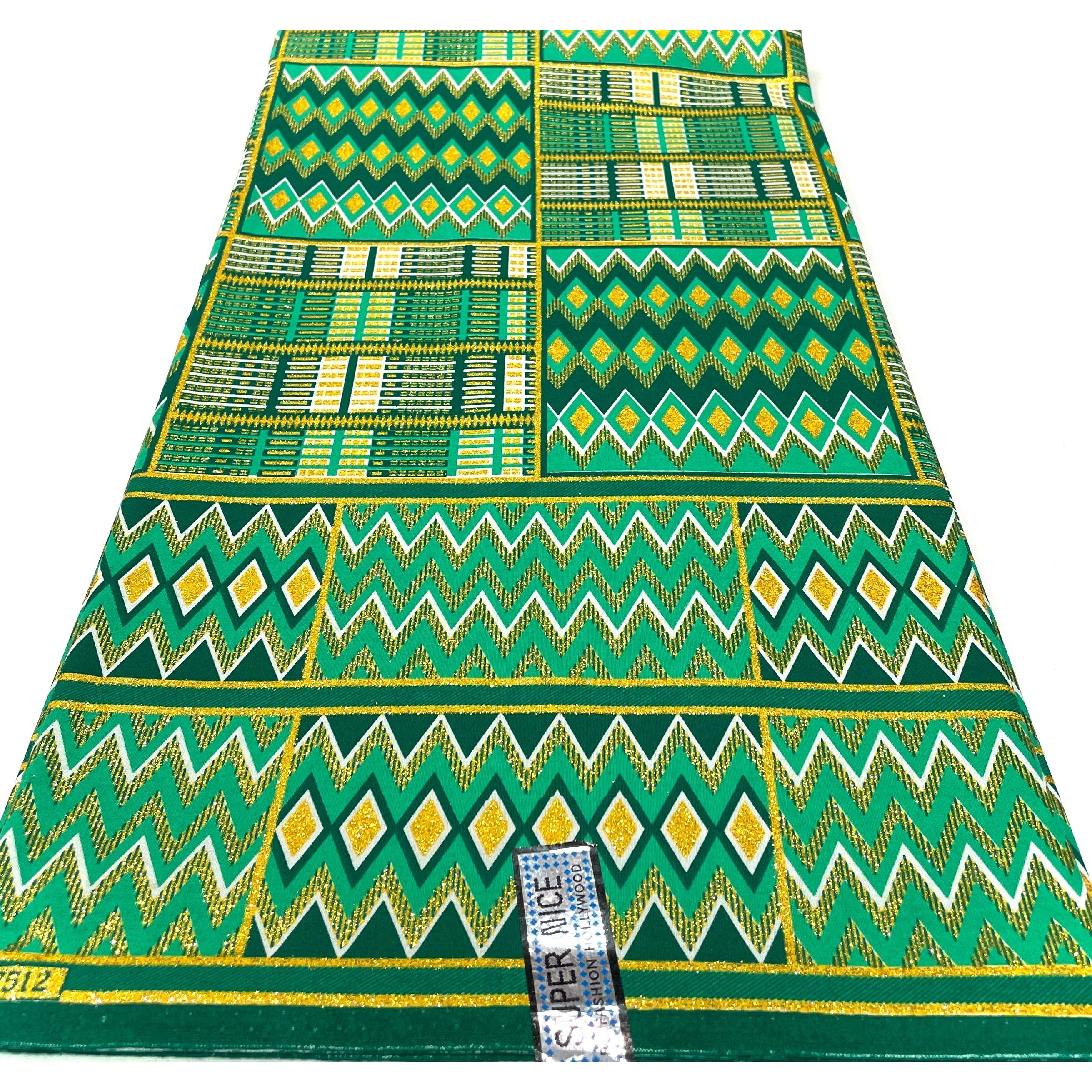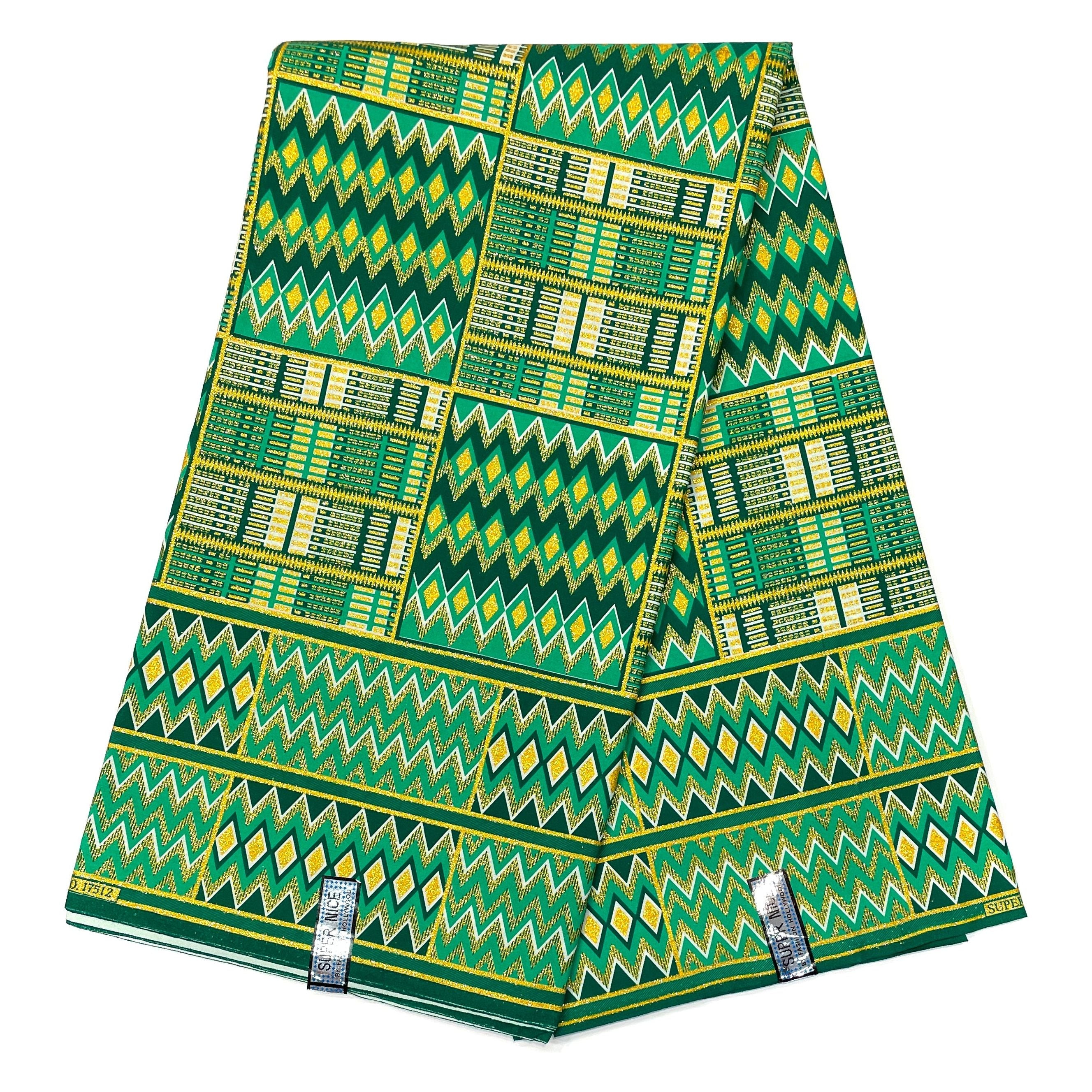Wax Pagne Africain - Tissu 6 Yards 100% Coton - Pailleté et Brillant - VERT / DORÉ