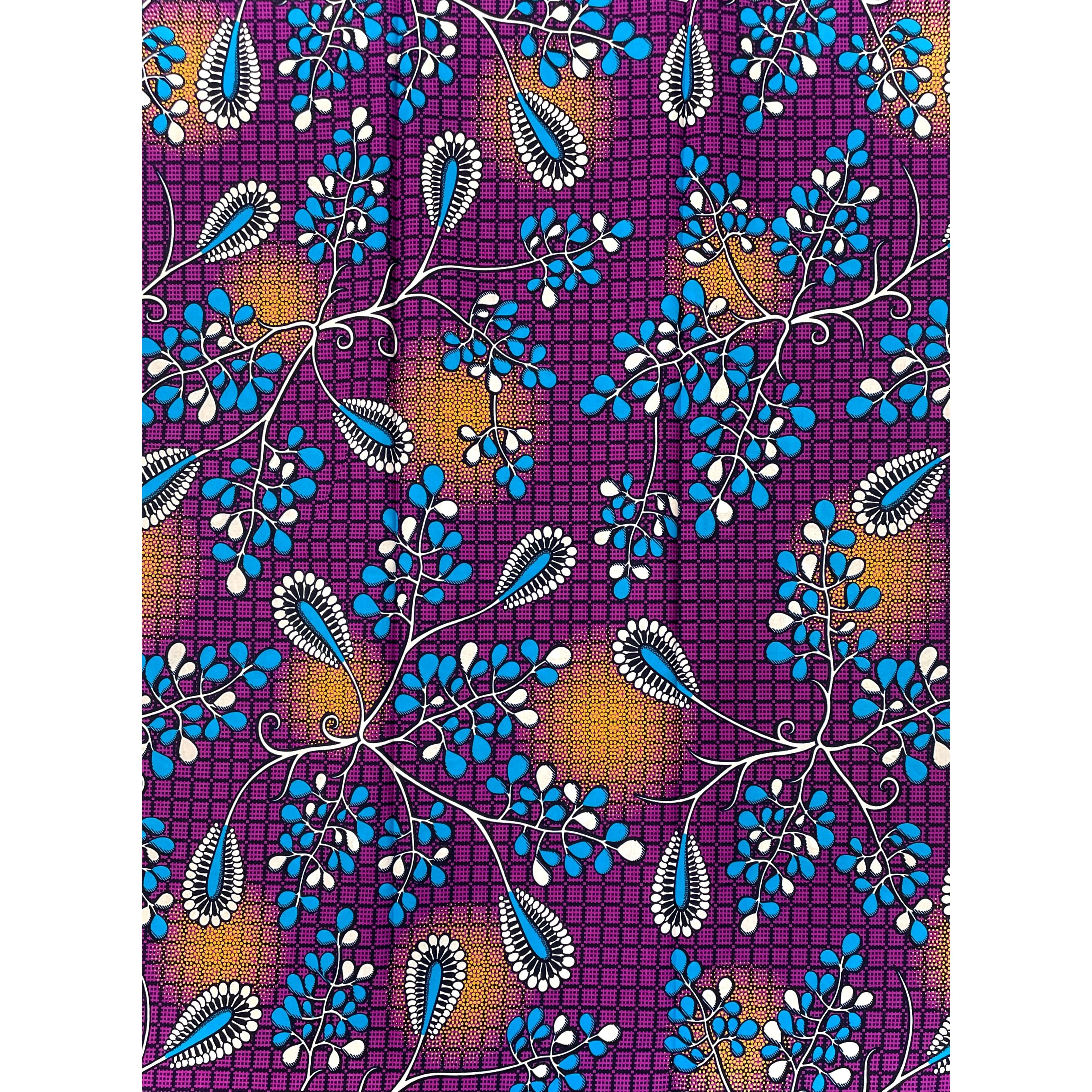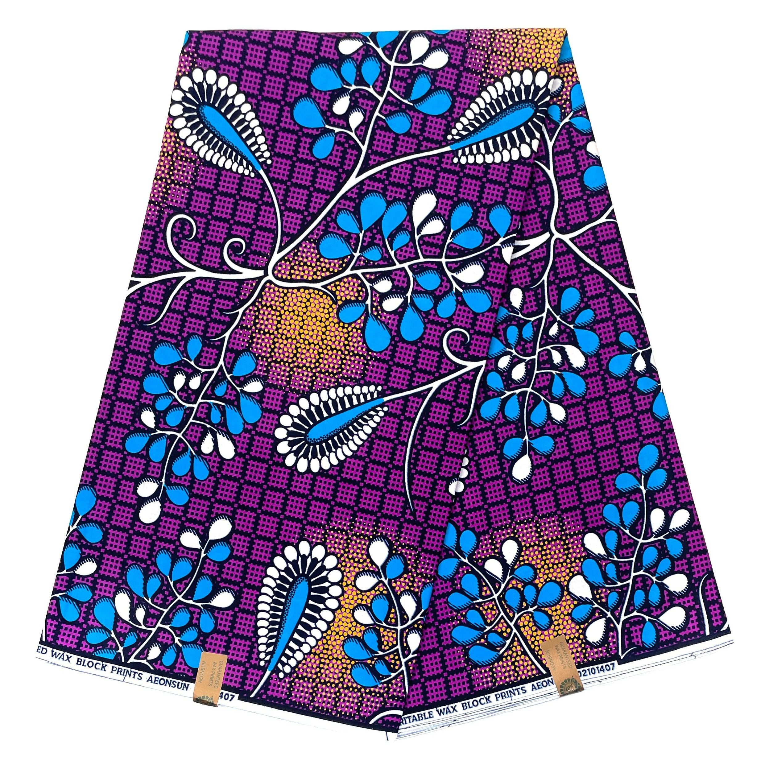 Wax Pagne Africain - Tissu 6 Yards 100% Coton - VIOLET / BLEU