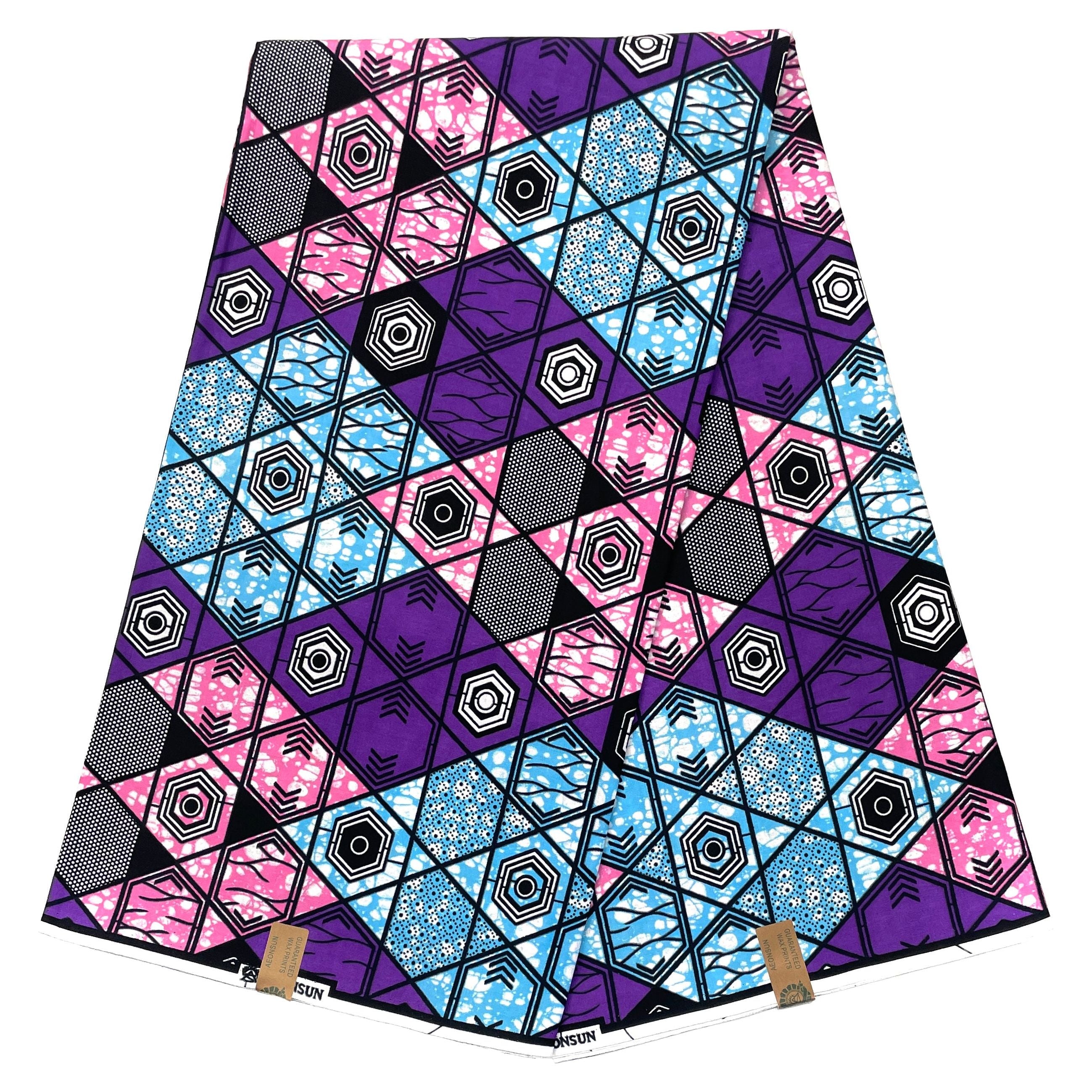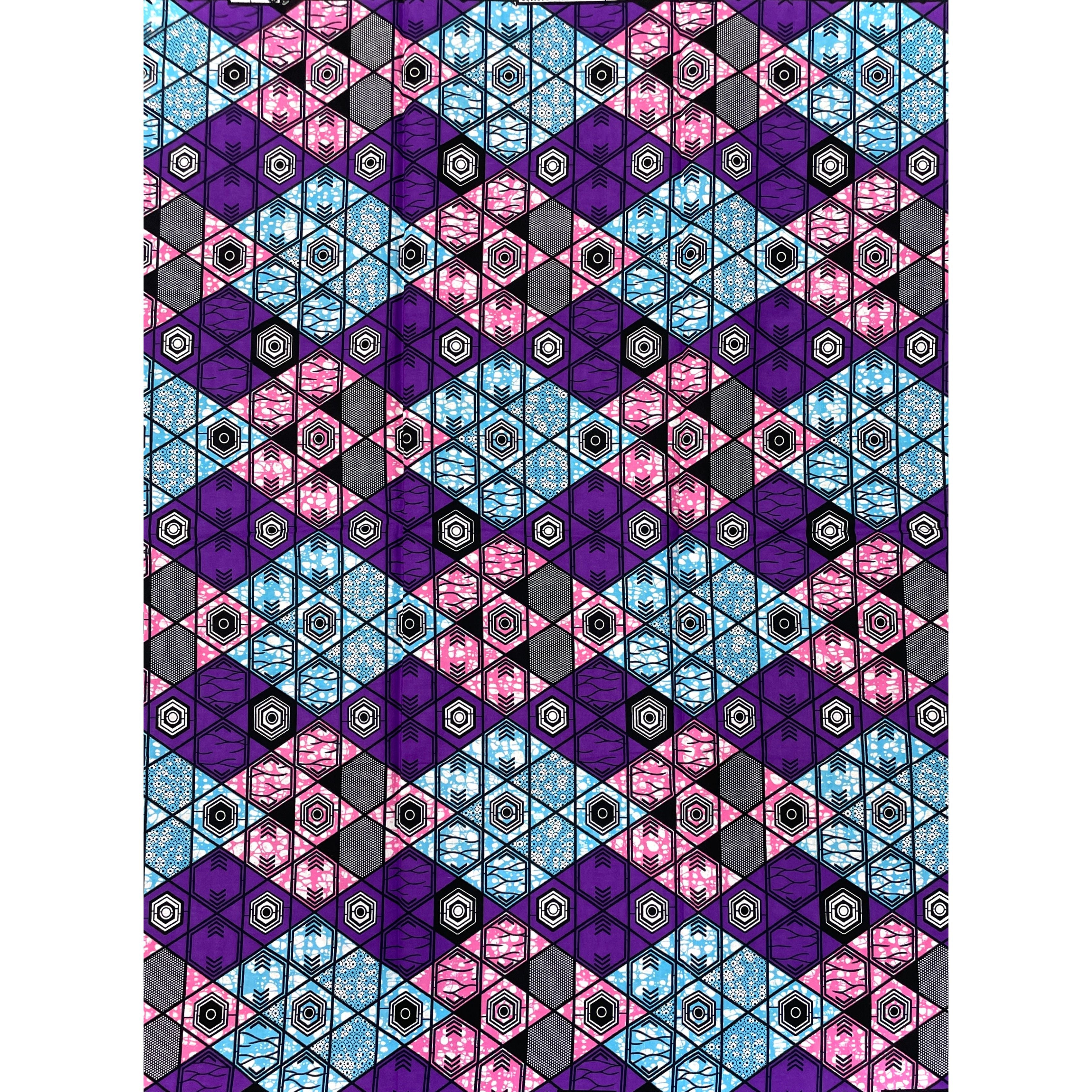 Wax Pagne Africain - Tissu 6 Yards 100% Coton - VIOLET / BLEU