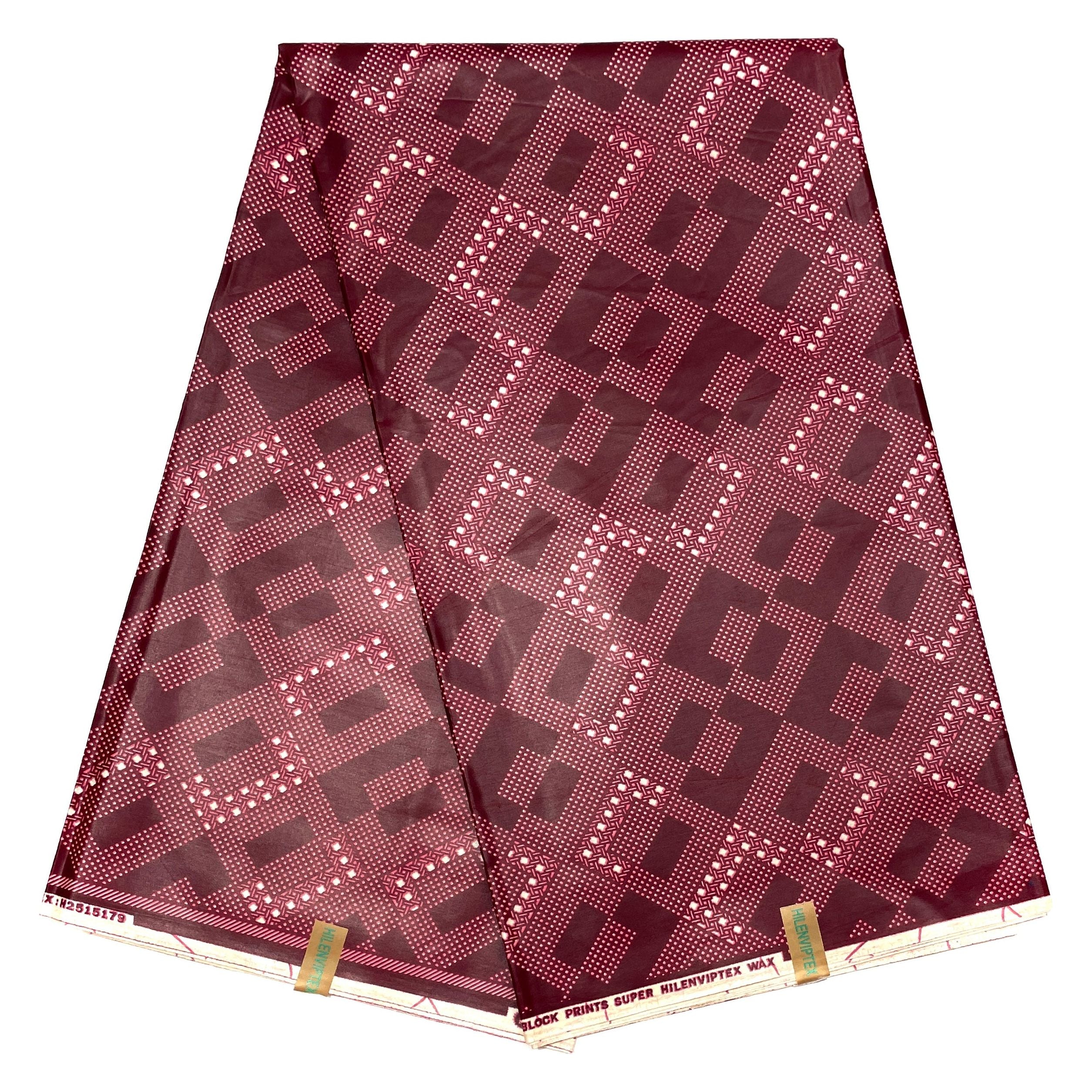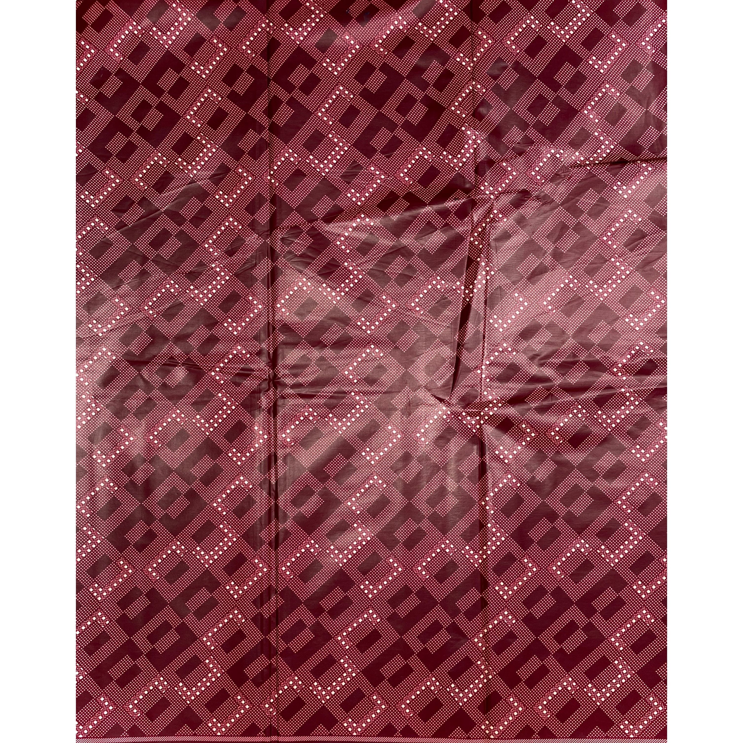 African Wax Print - Satin Fabric 6 Yards 100% Cotton - BORDEAUX / BEIGE