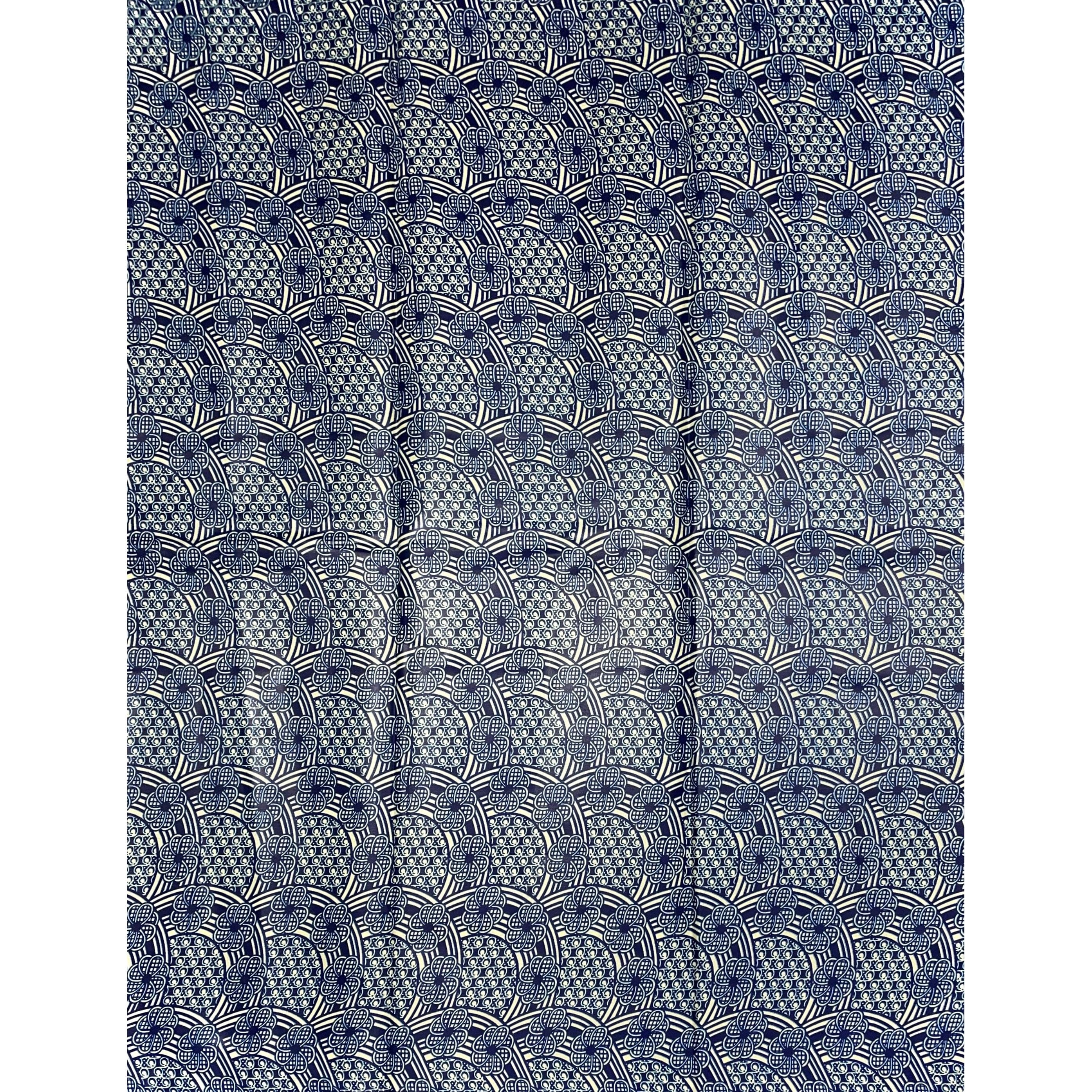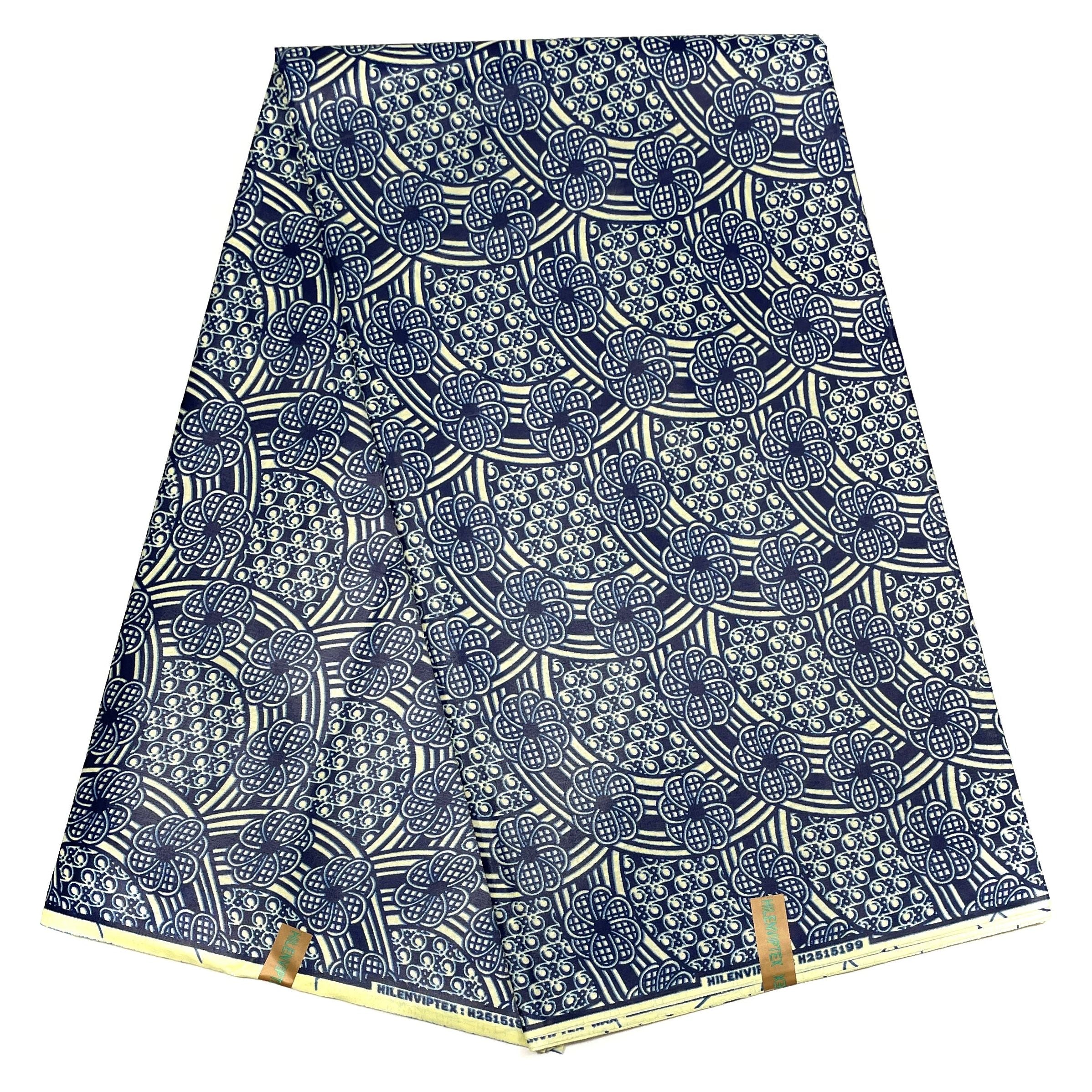 African Wax Print - Satin Fabric 6 Yards 100% Cotton - BLUE / BEIGE