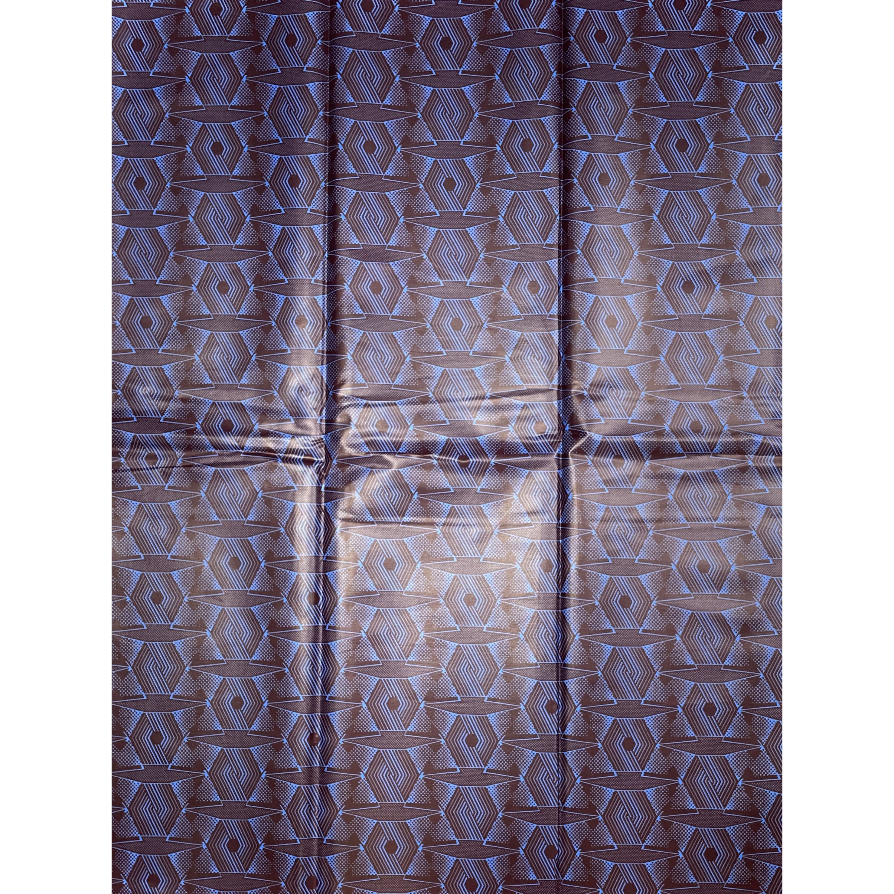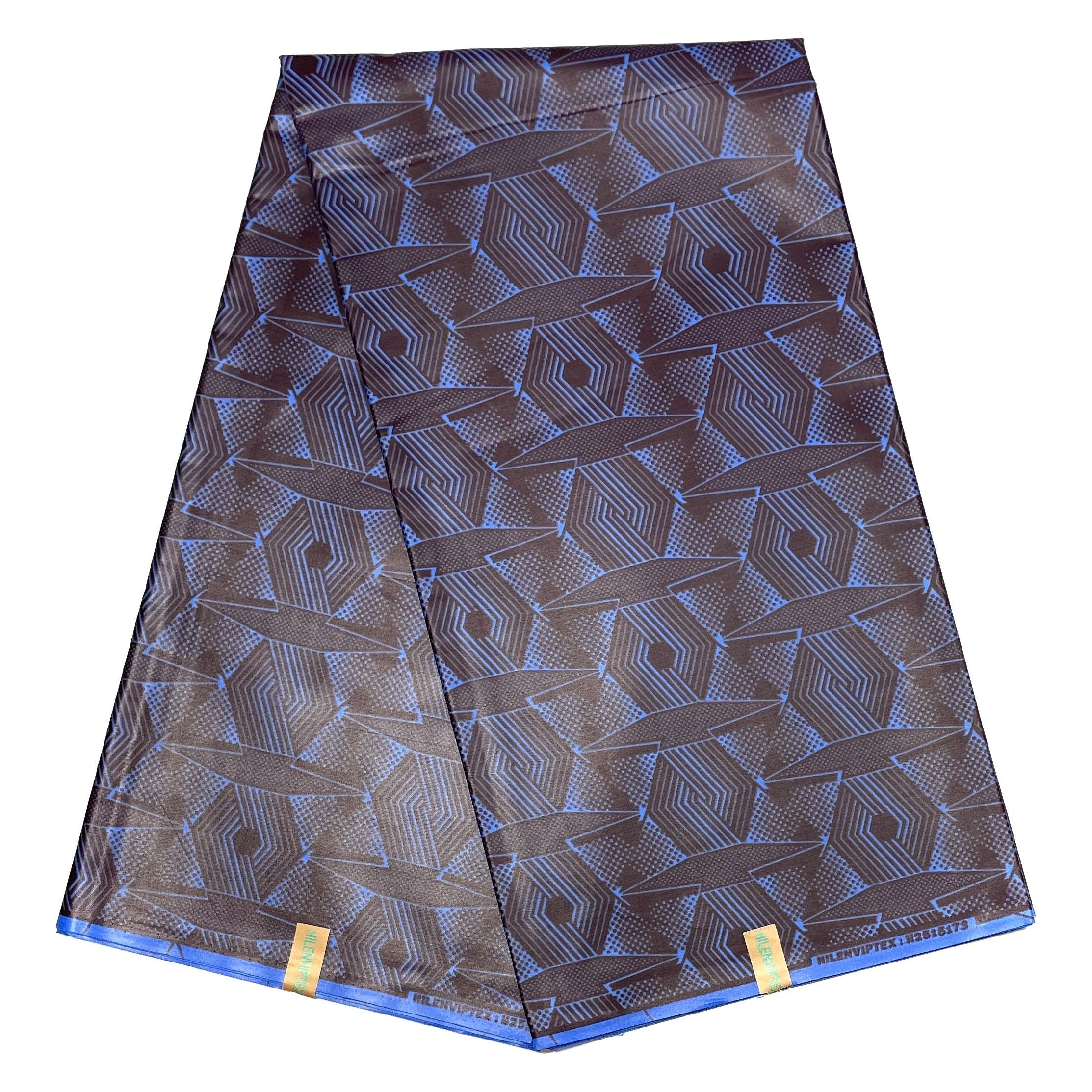 African Wax Print - Satin Fabric 6 Yards 100% Cotton - BROWN / BLUE