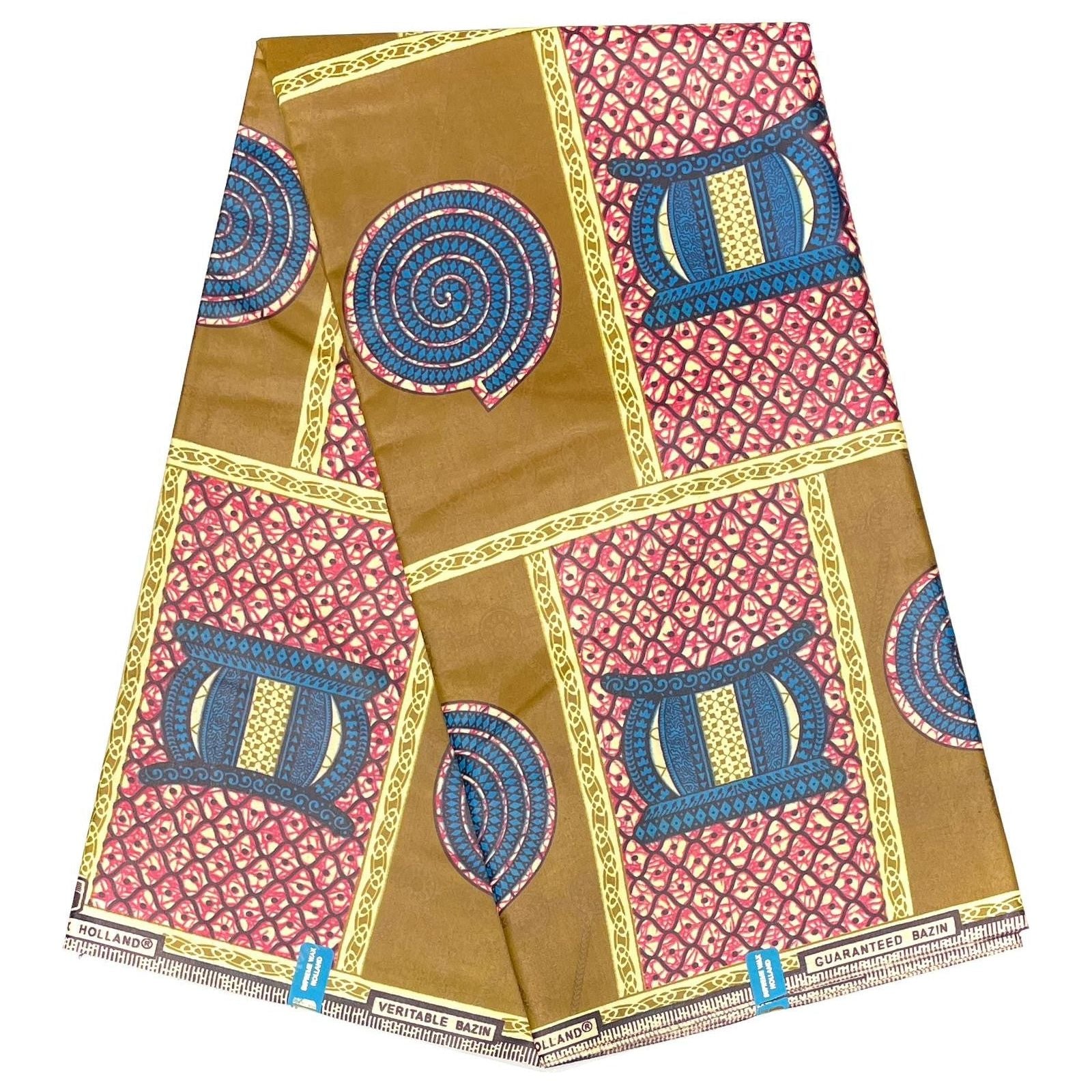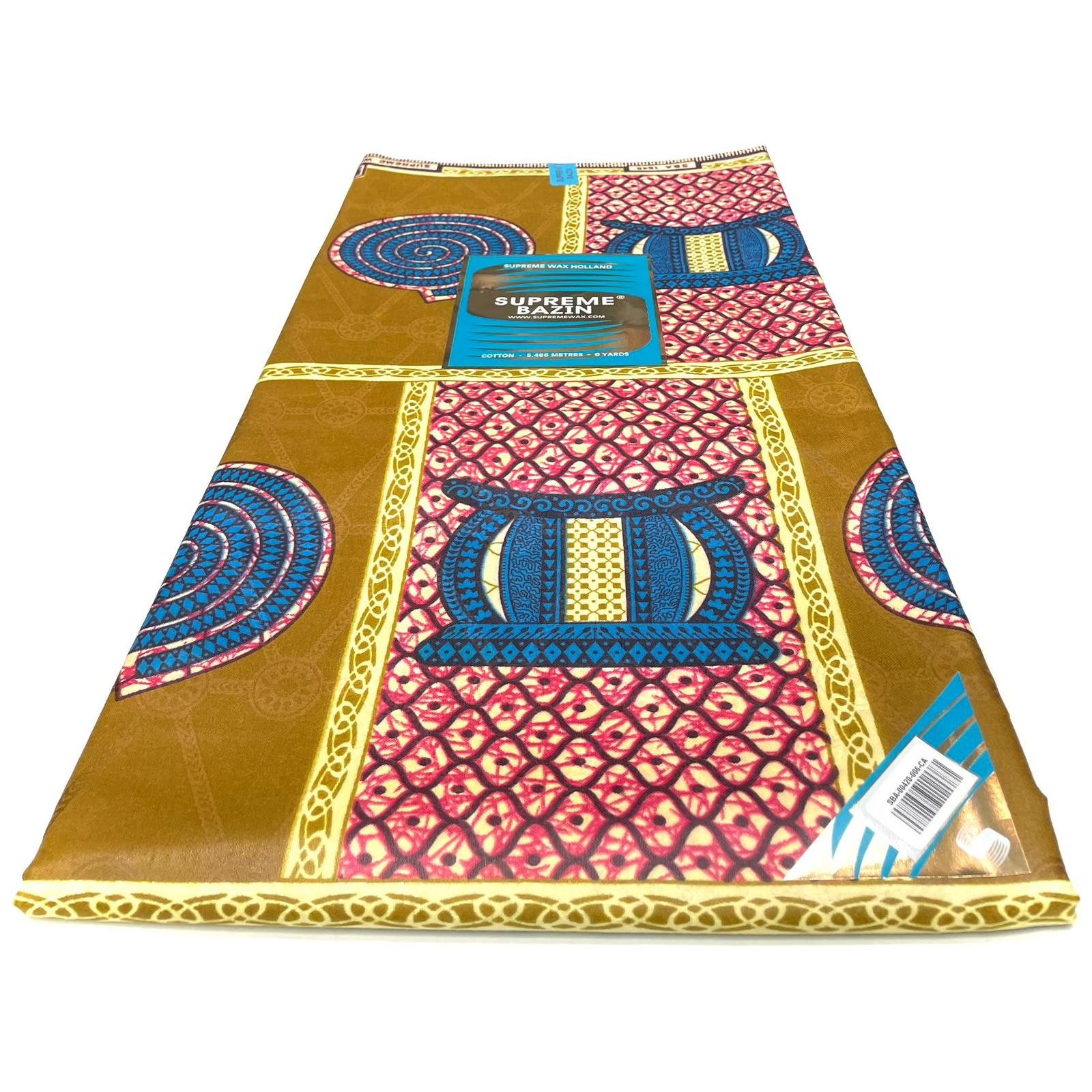 Bazin Wax African Pagne - 6 Yards Cotton Fabric - MULTI