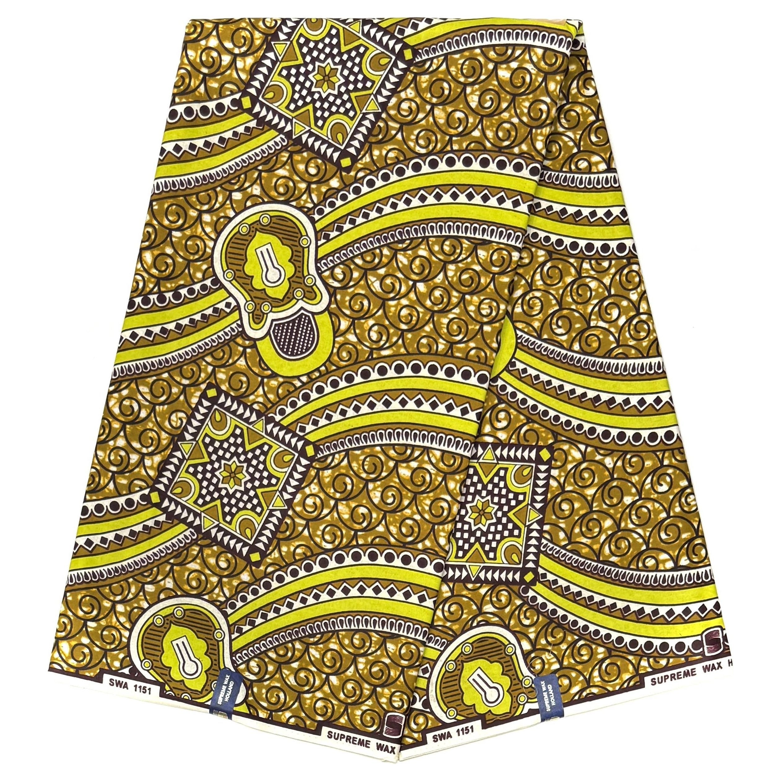 African Loincloth Fabric - 6 Yards 100% Cotton - SUPREME WAX - GREEN / BROWN