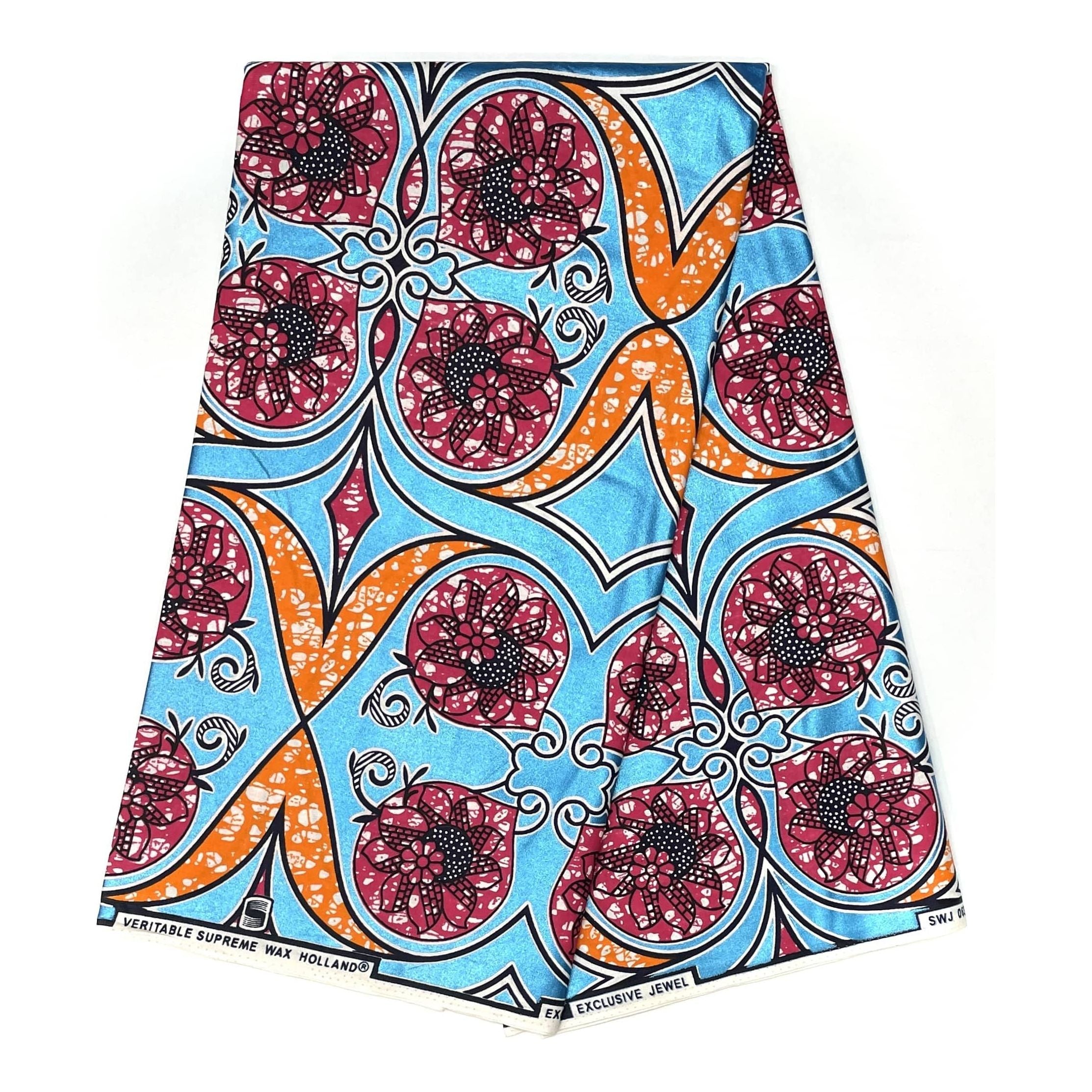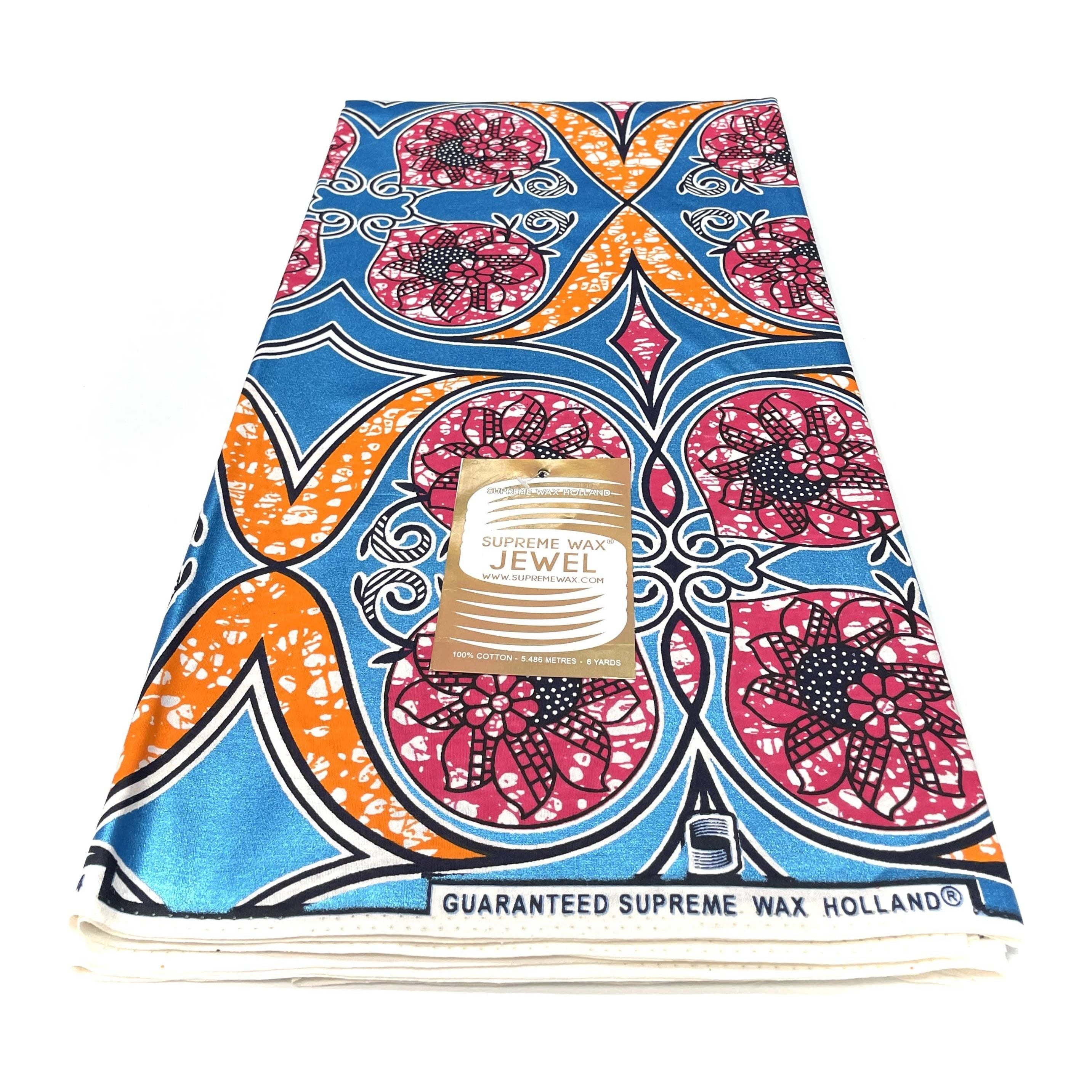 African Wax Pagne - 6 Yards Cotton Fabric - SUPREME JEWEL - BLUE / PINK