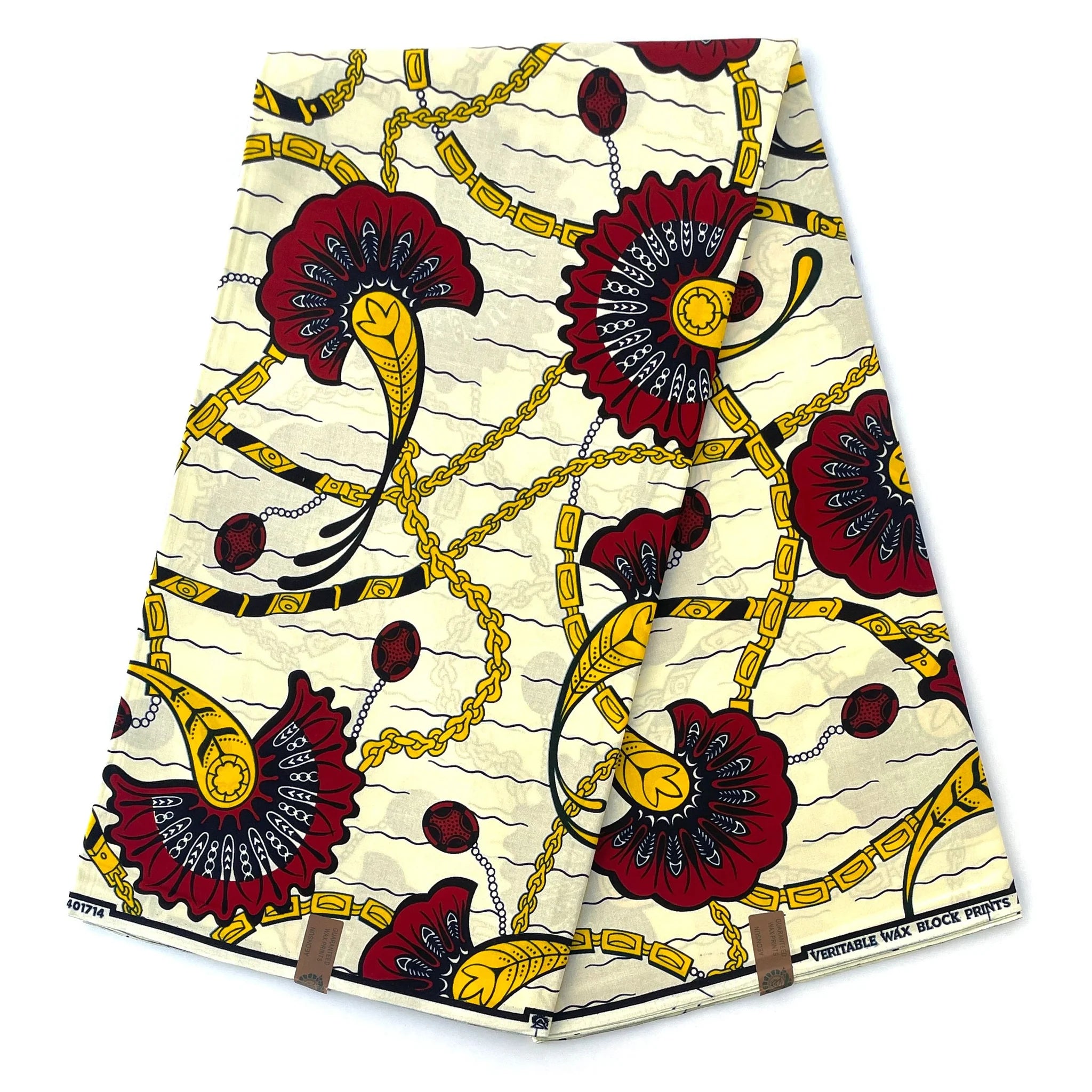Wax Tissu Pagne Africain - Coupon 2 Yards 100% Coton - BEIGE / MARRON