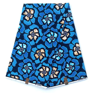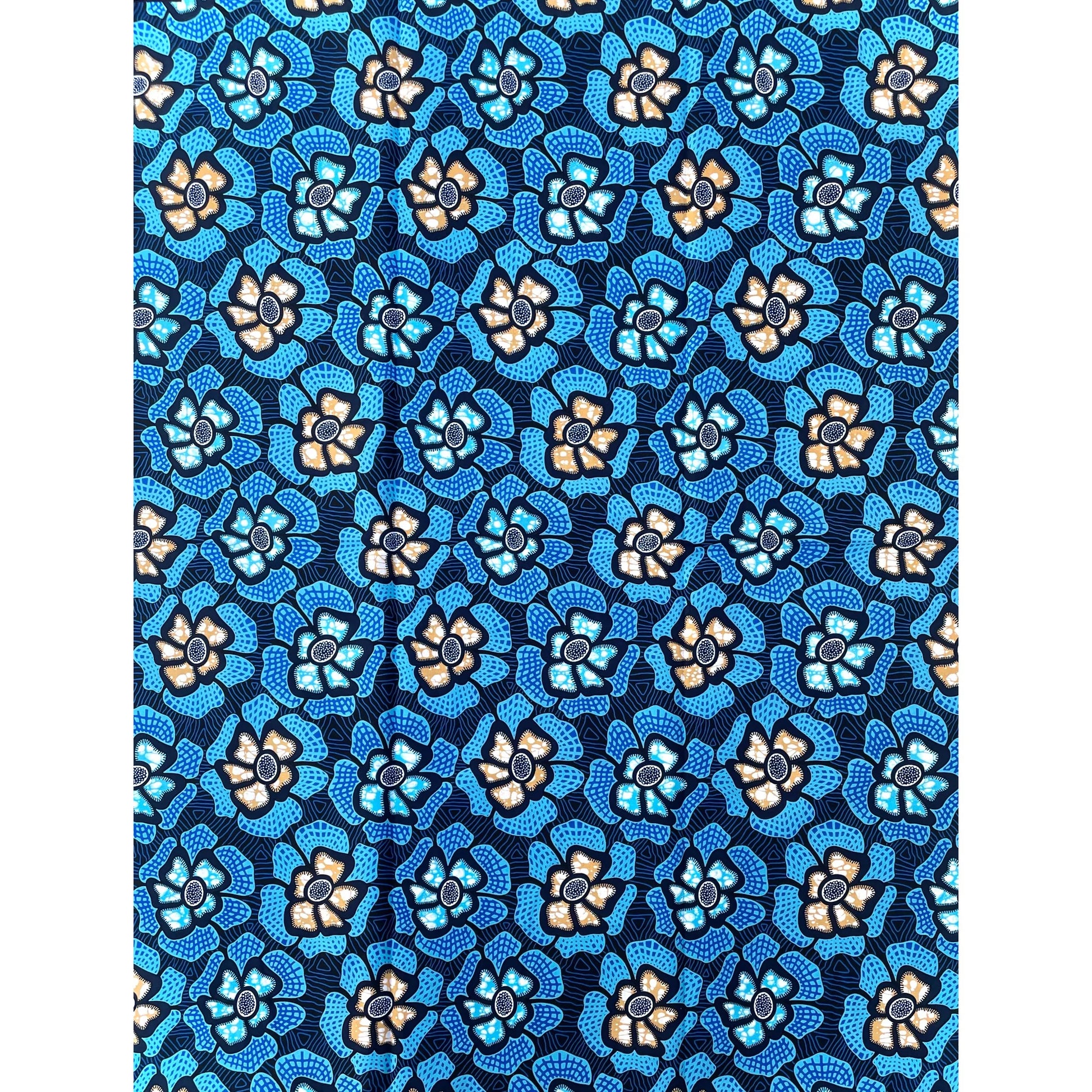 Wax Tissu Pagne Africain - Coupon 2 Yards 100% Coton - BLEU / BEIGE