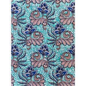 Wax Tissu Pagne Africain - Coupon 2 Yards 100% Coton - BLEU / TURQUOISE
