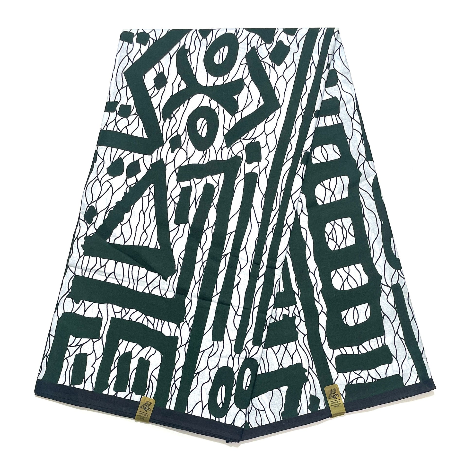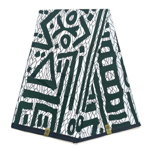 Wax Tissu Pagne Africain - Coupon 2 Yards 100% Coton - BOGOLAN BLANC / VERT