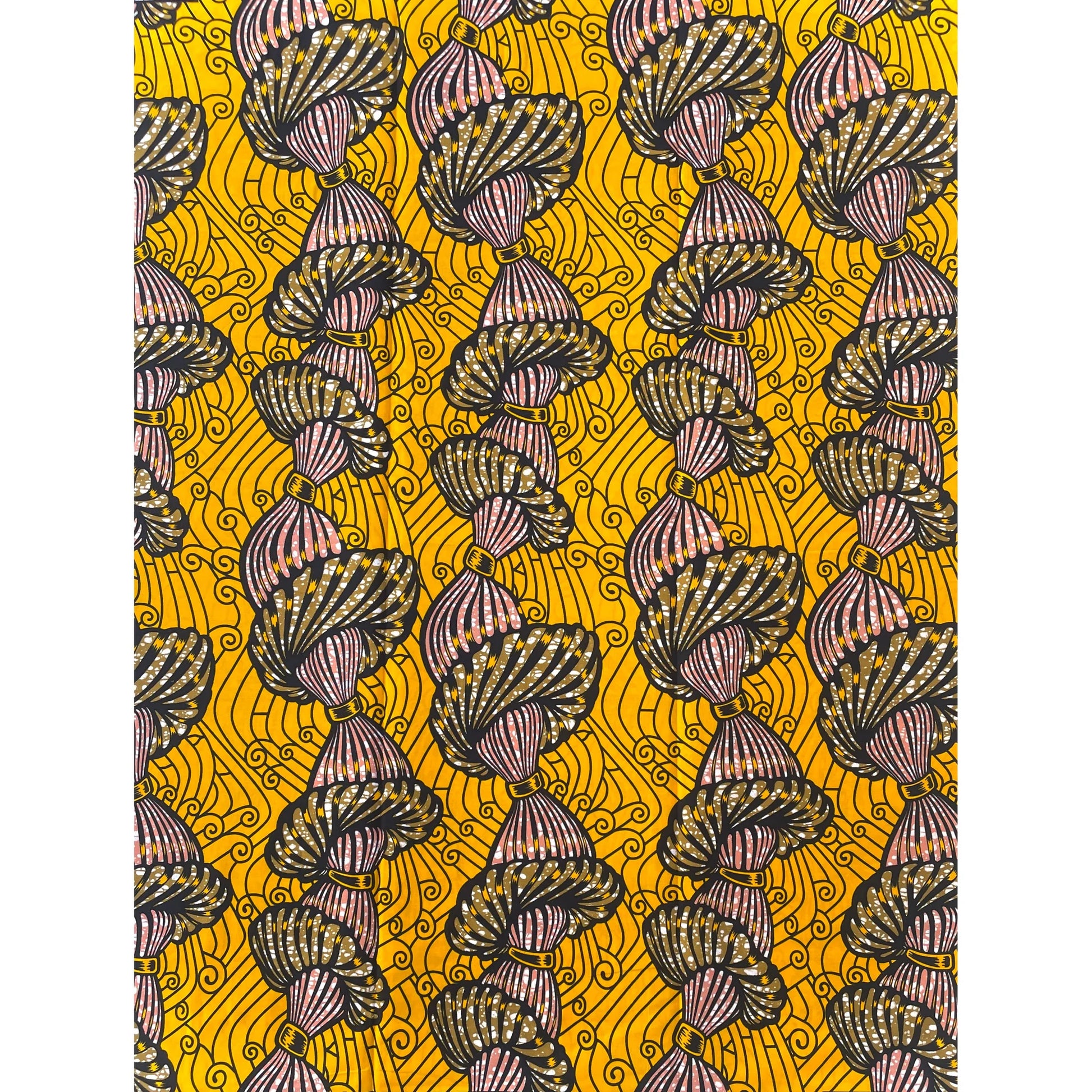 Wax Tissu Pagne Africain - Coupon 2 Yards 100% Coton - JAUNE FONCÉ / ROSE CLAIR
