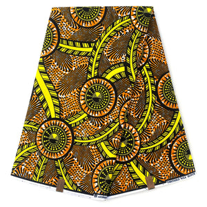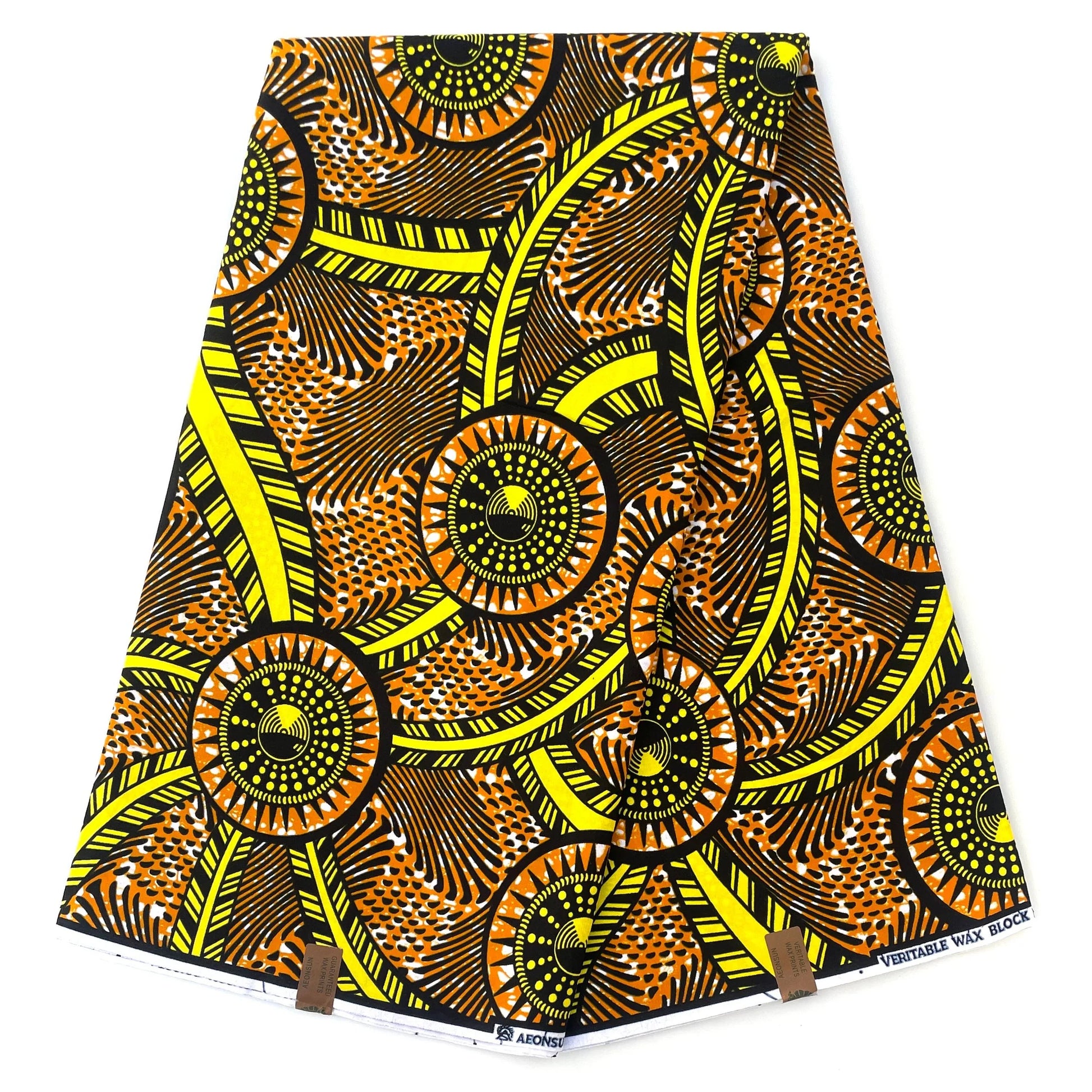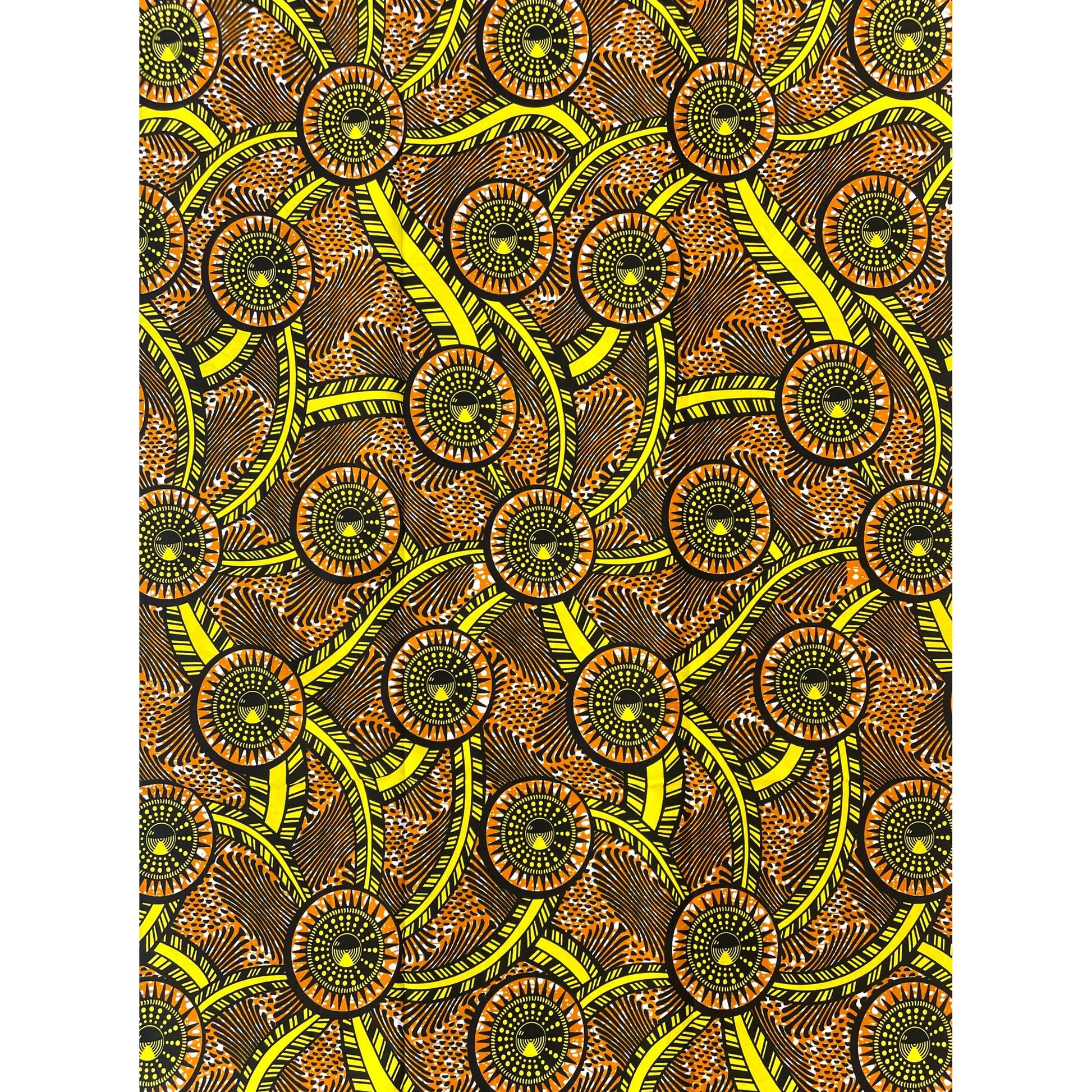 Wax Tissu Pagne Africain - Coupon 2 Yards 100% Coton - ORANGE / JAUNE