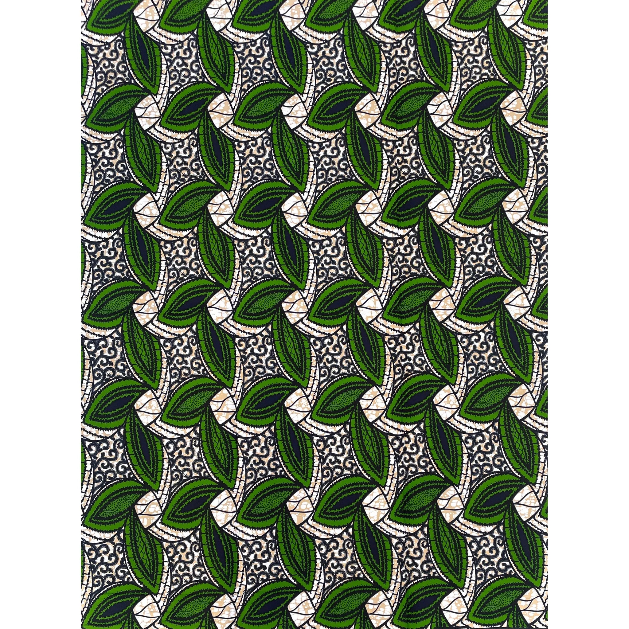 Wax Tissu Pagne Africain - Coupon 2 Yards 100% Coton - VERT / BEIGE