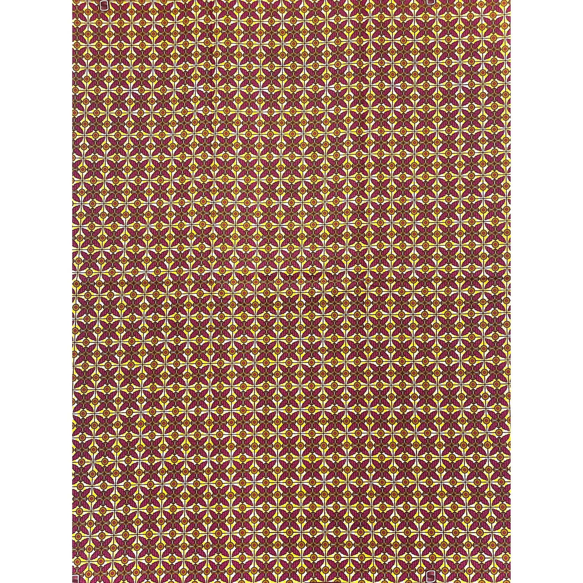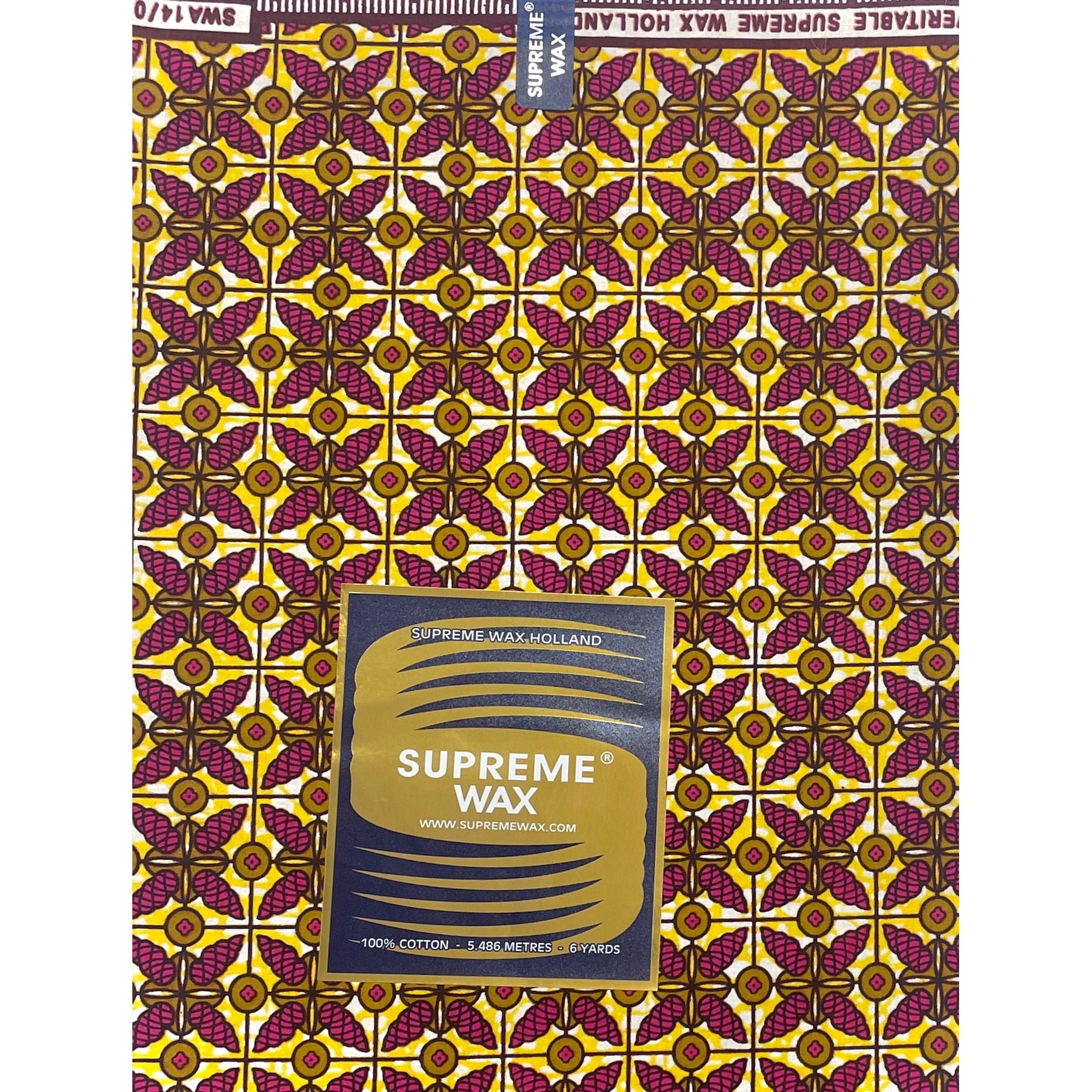 Tissu Pagne Africain - 6 Yards 100% Coton - SUPREME WAX - ROSE / JAUNE