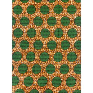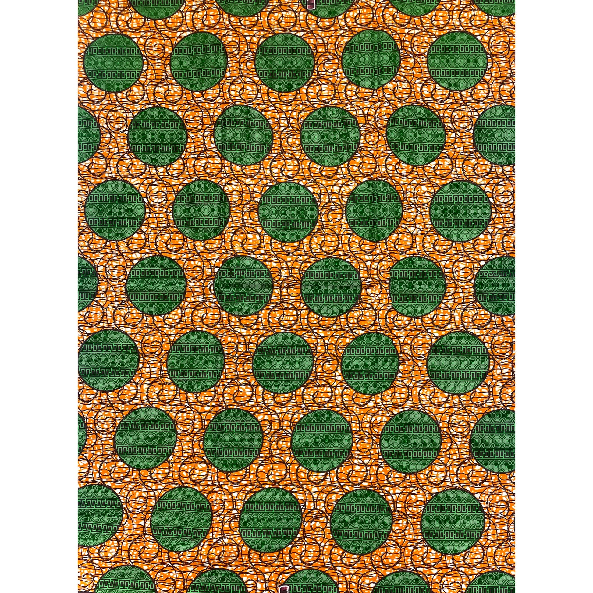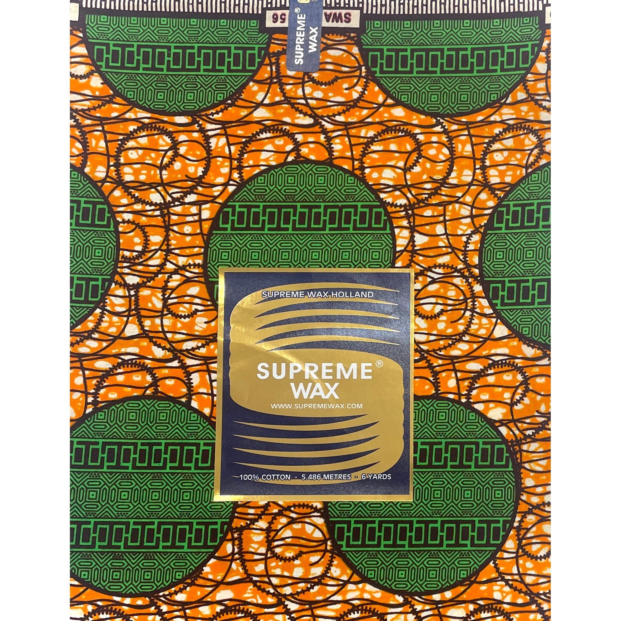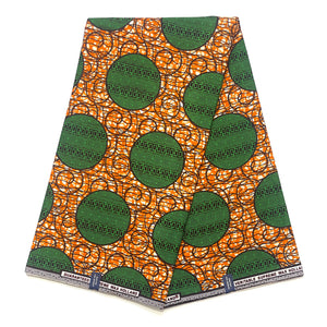 Tissu Pagne Africain - 6 Yards 100% Coton - SUPREME WAX - VERT / ORANGE