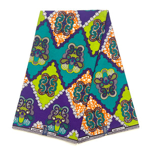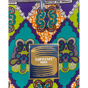 Tissu Pagne Africain - 6 Yards 100% Coton - SUPREME WAX - VIOLET / VERT