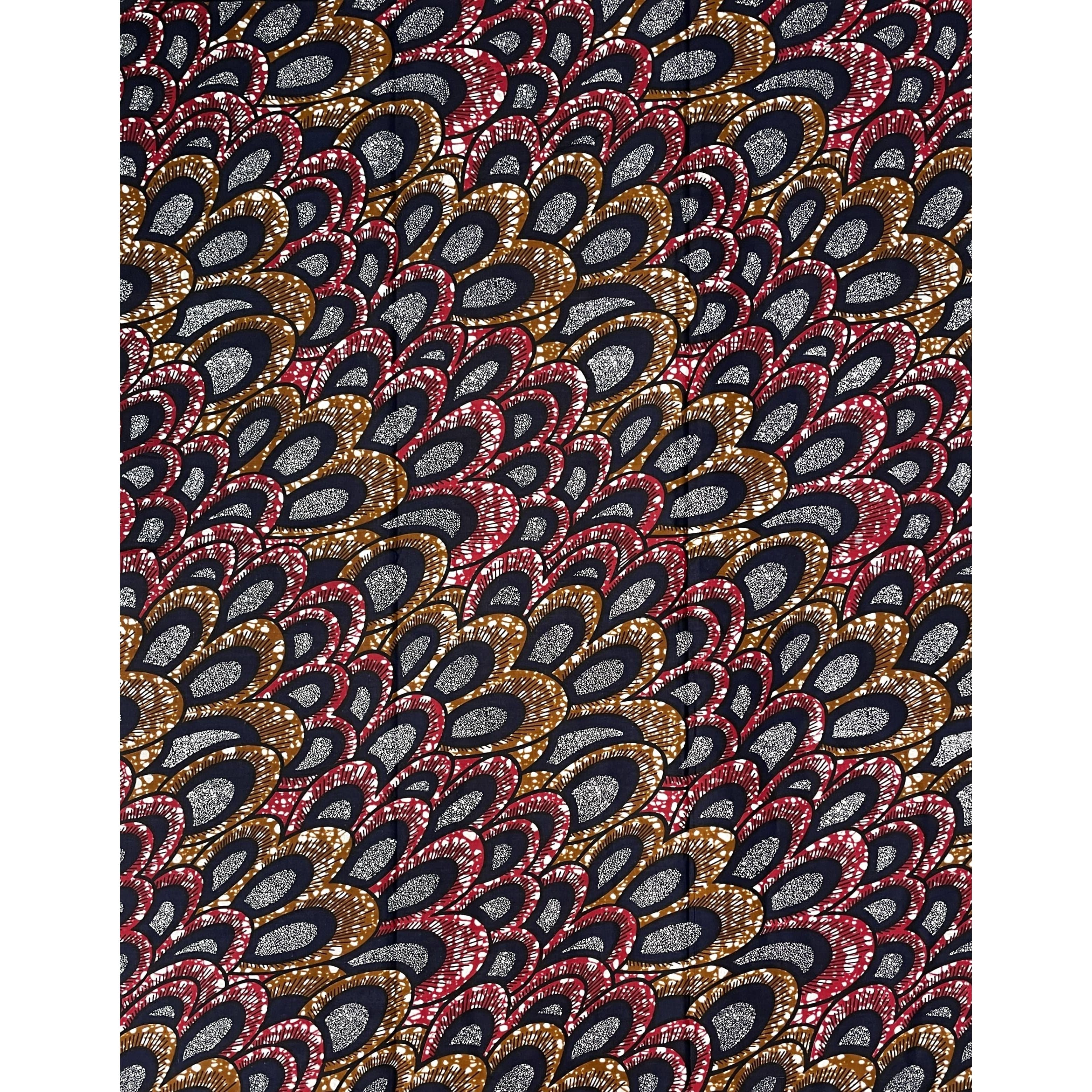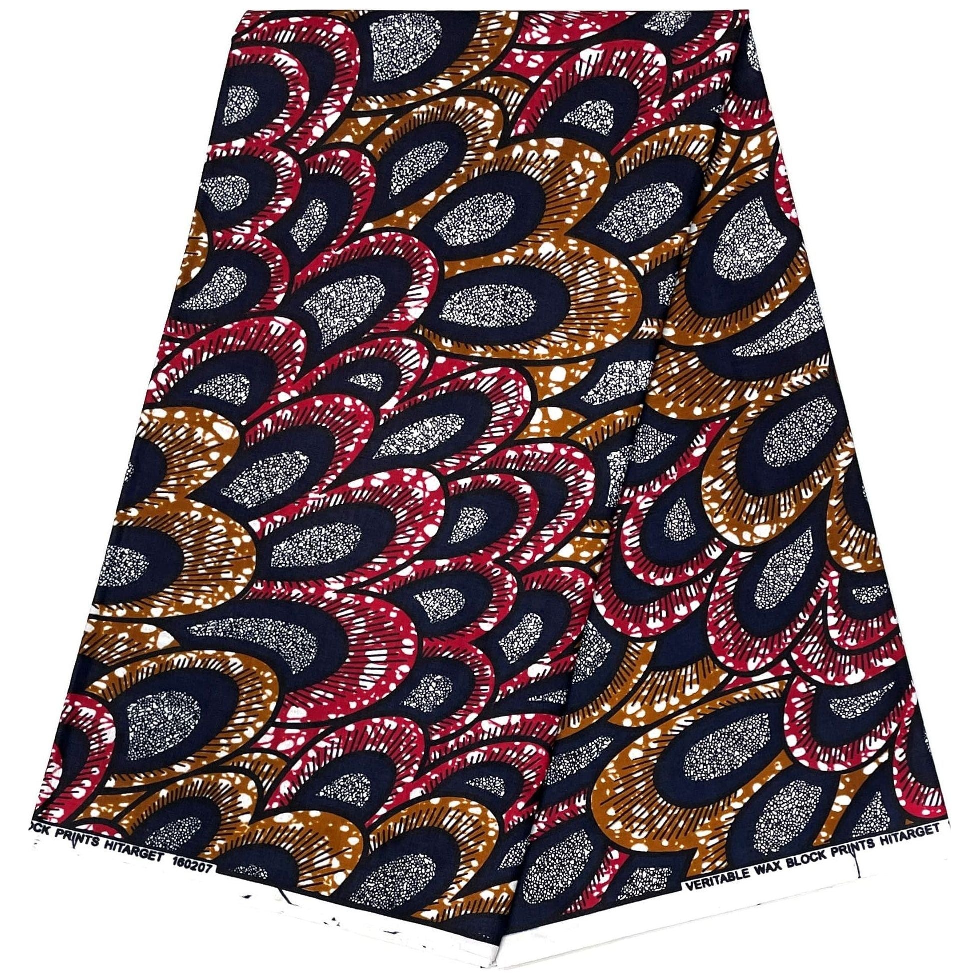 Pagne di cera africana - Tessuto 100% cotone da 6 metri - MARRONE / BLU
