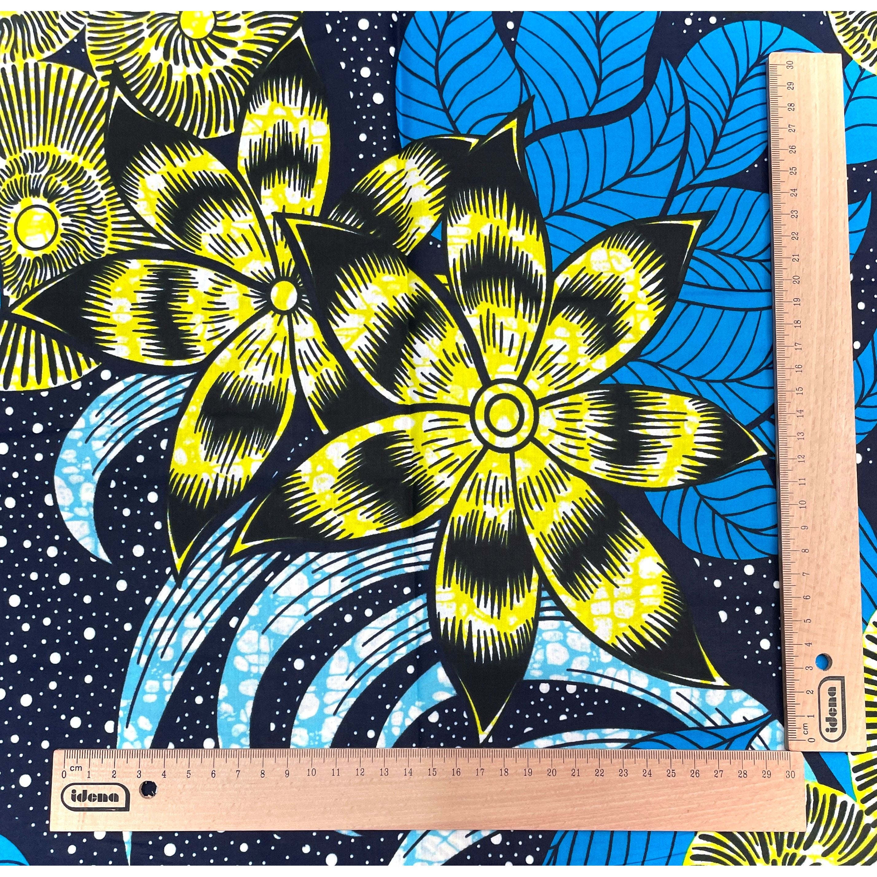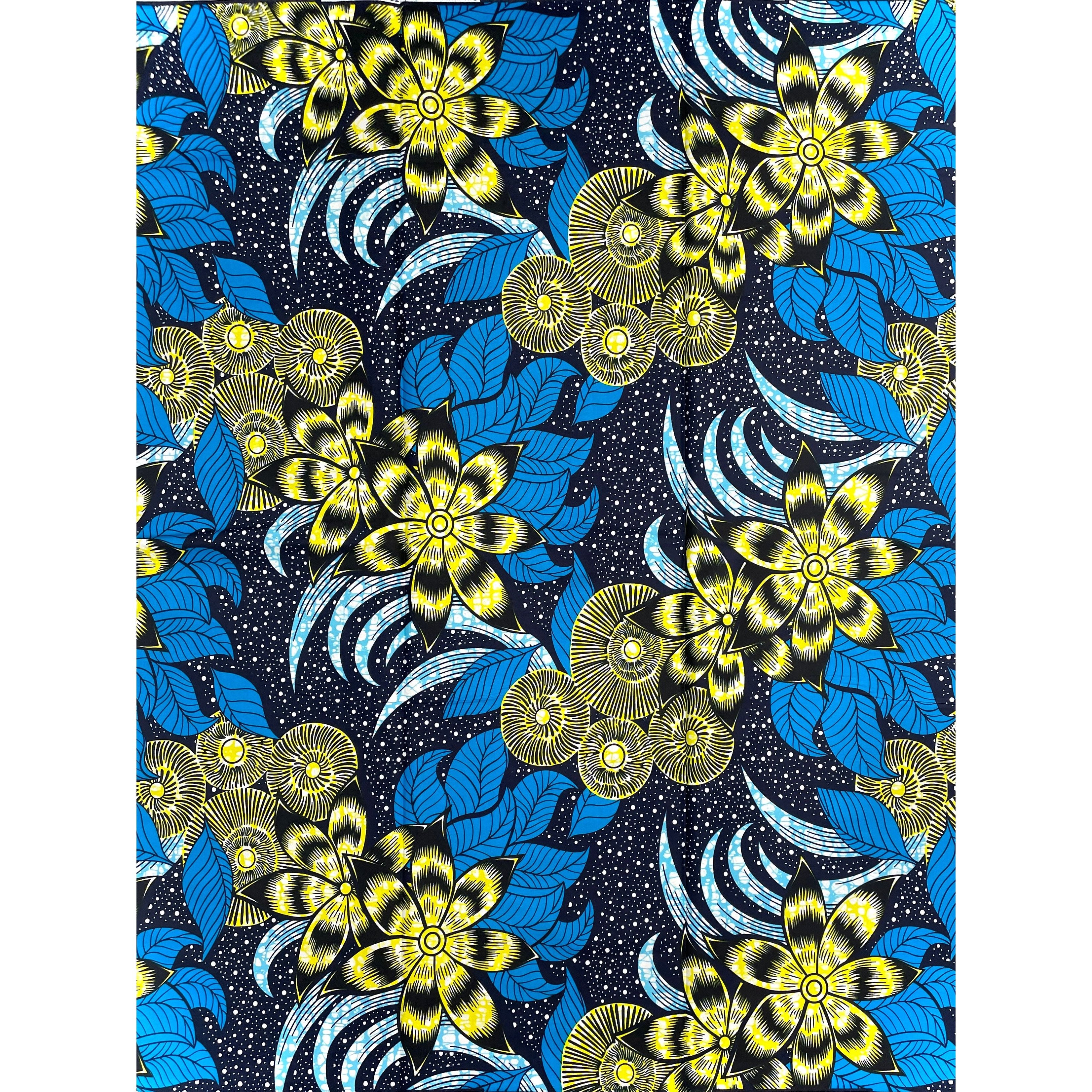 Pagne di cera africana - Tessuto 100% cotone da 6 metri - BIANCO / BLU
