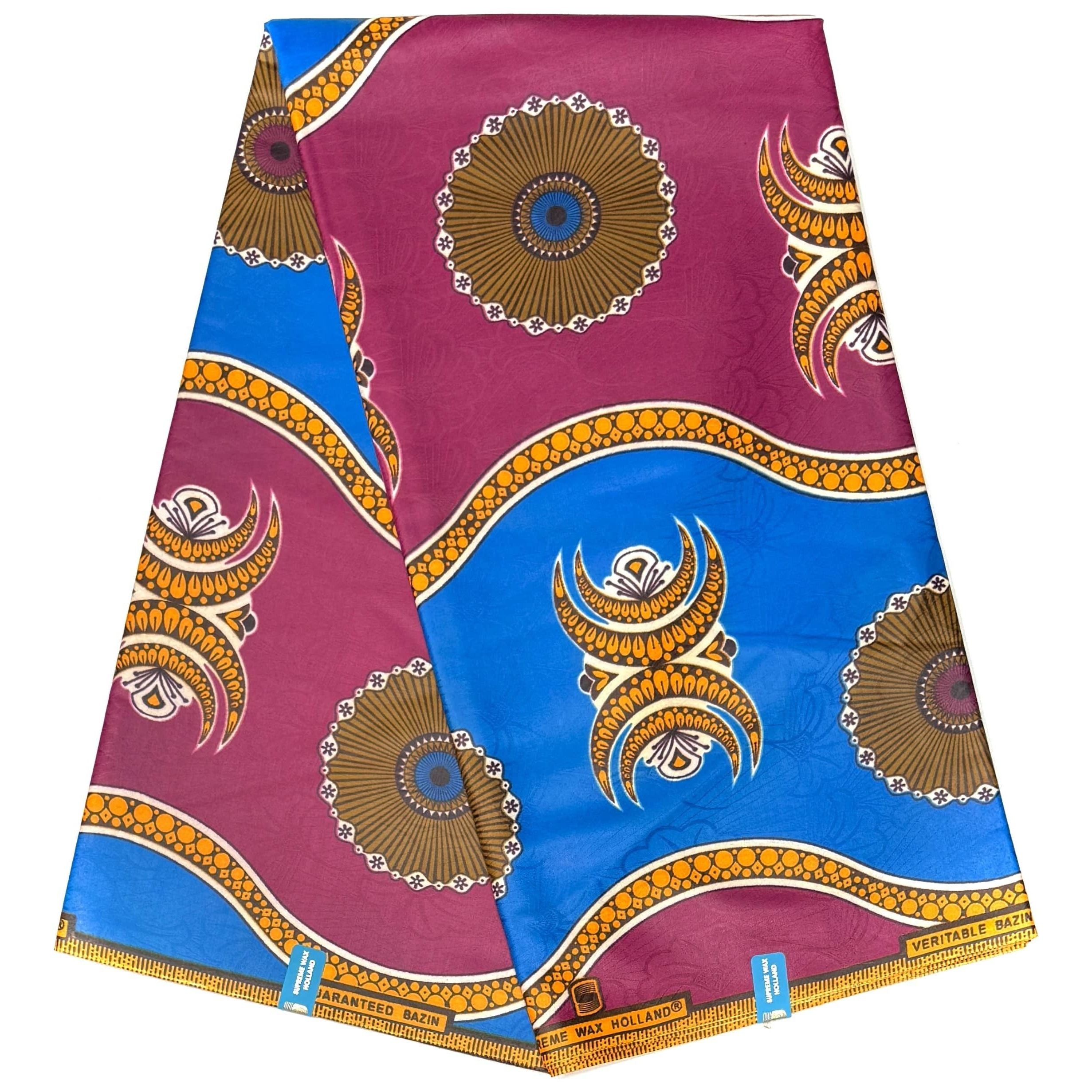 Pagne africana in cera Bazin - Tessuto di cotone da 6 iarde - VIOLA / BLU