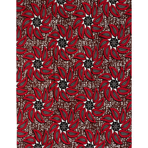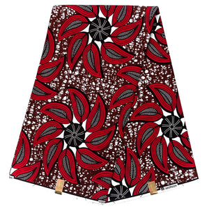 Wax Tissu Pagne Africain - Coupon 2 Yards 100% Coton - ROUGE / MARRON