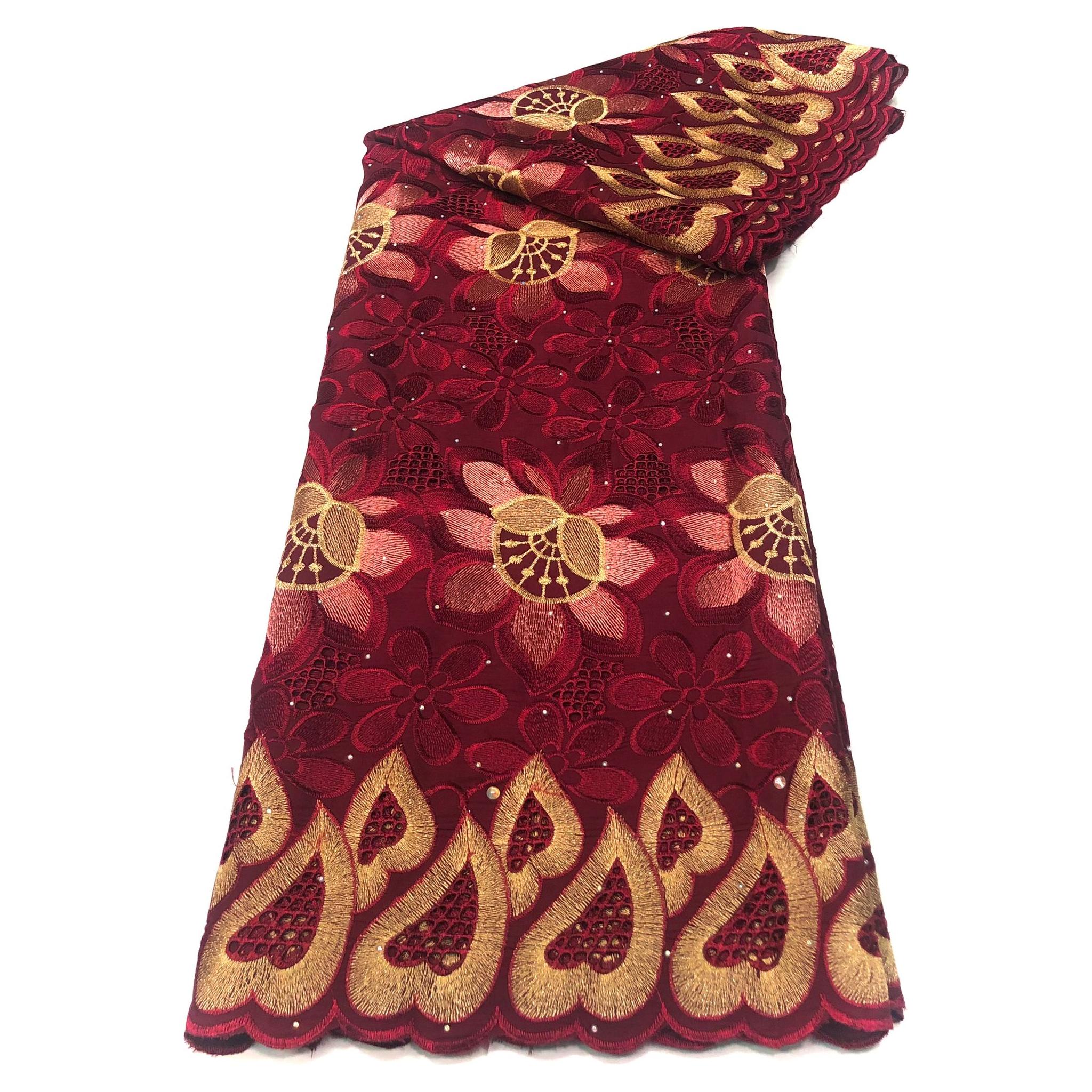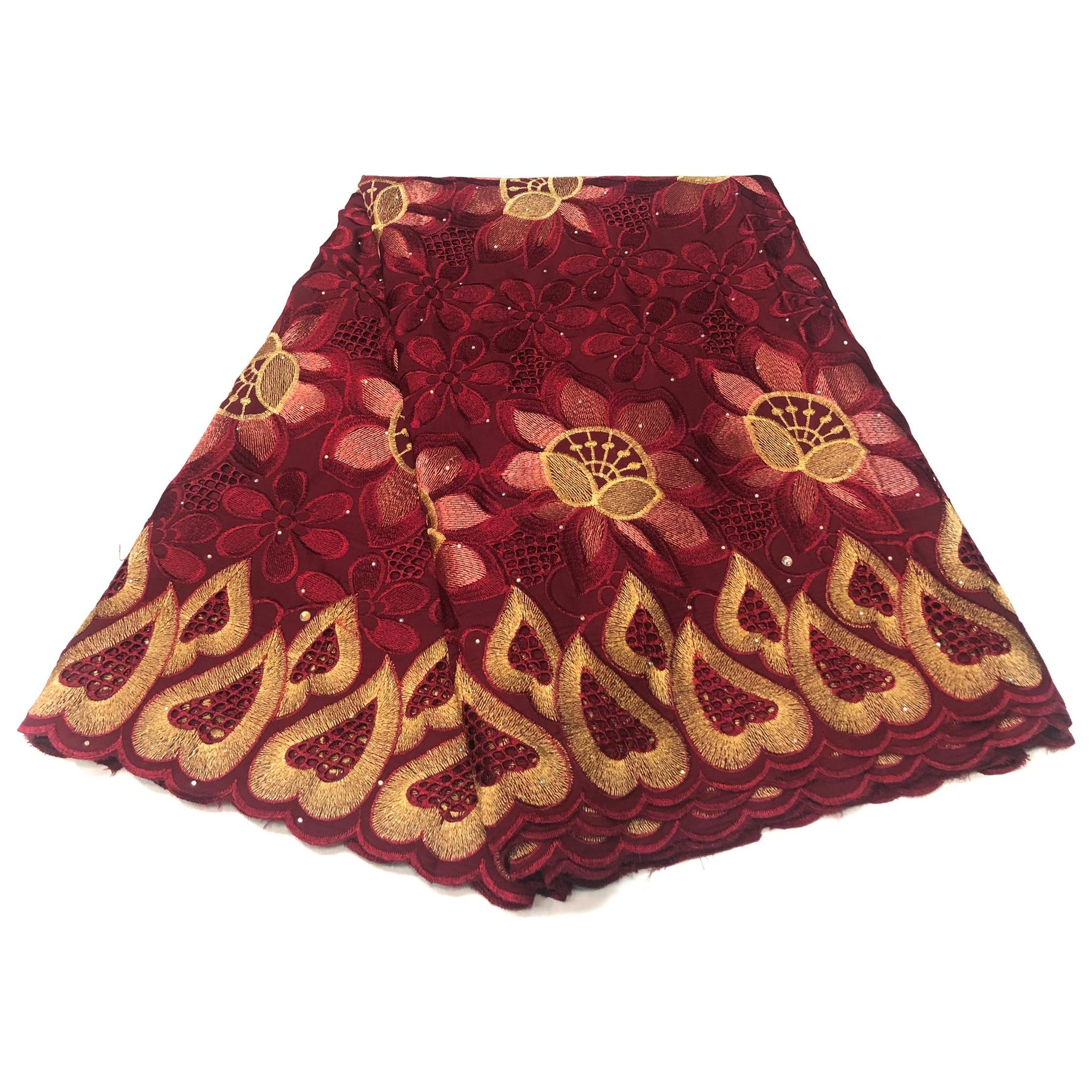 Brodé Broderie type SWISS LACE - Tissu African 5 Yards - BORDEAUX / DORÉ OR