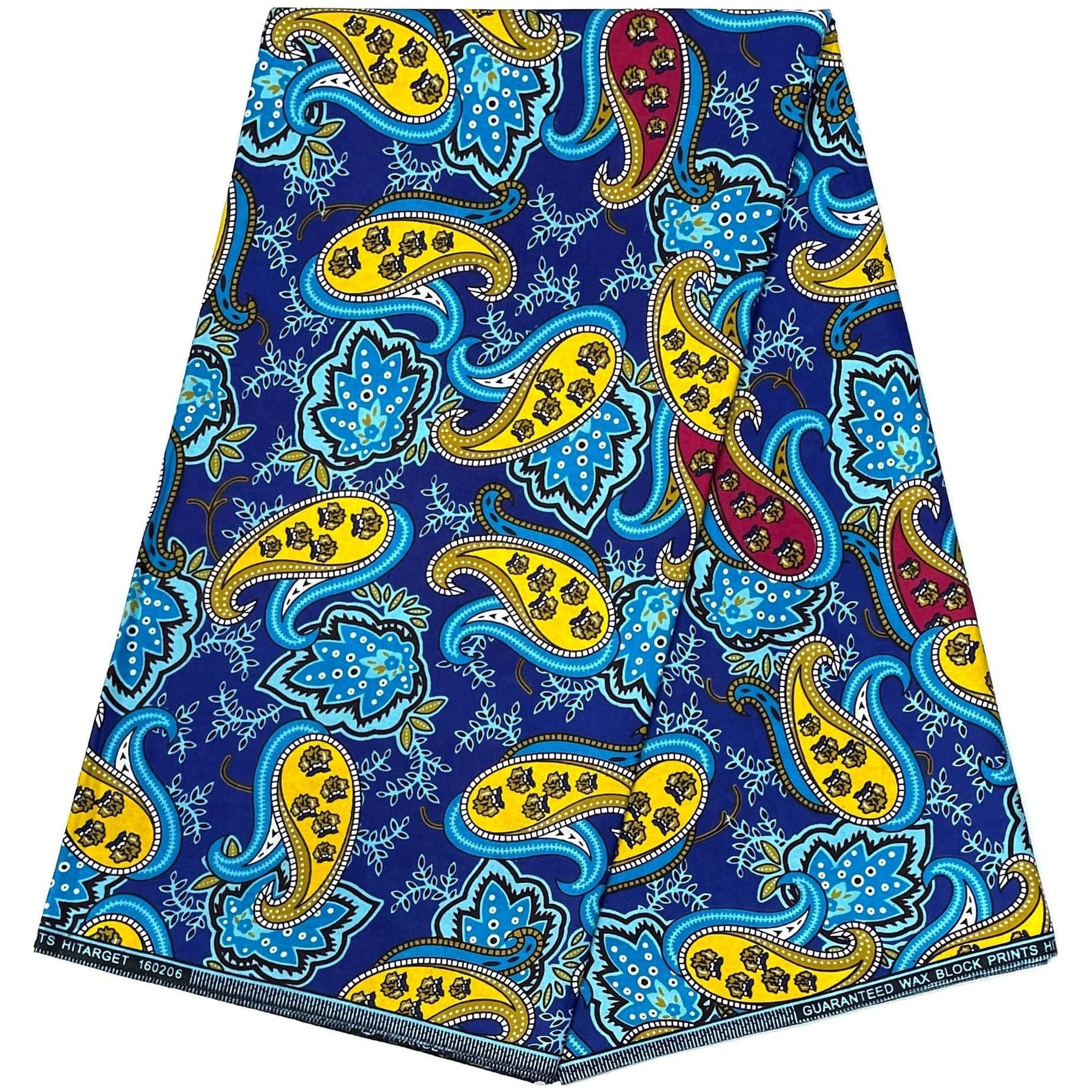 Wax Tissu Pagne Africain - Coupon 2 Yards 100% Coton - Fond BLEU