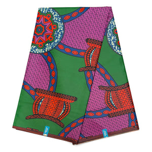 Supreme Bazin Wax Pagne Africain - Tissu 6 Yards Coton - VIOLET / VERT