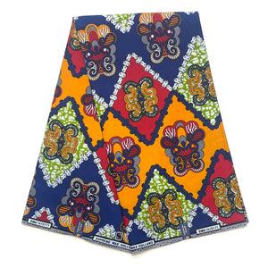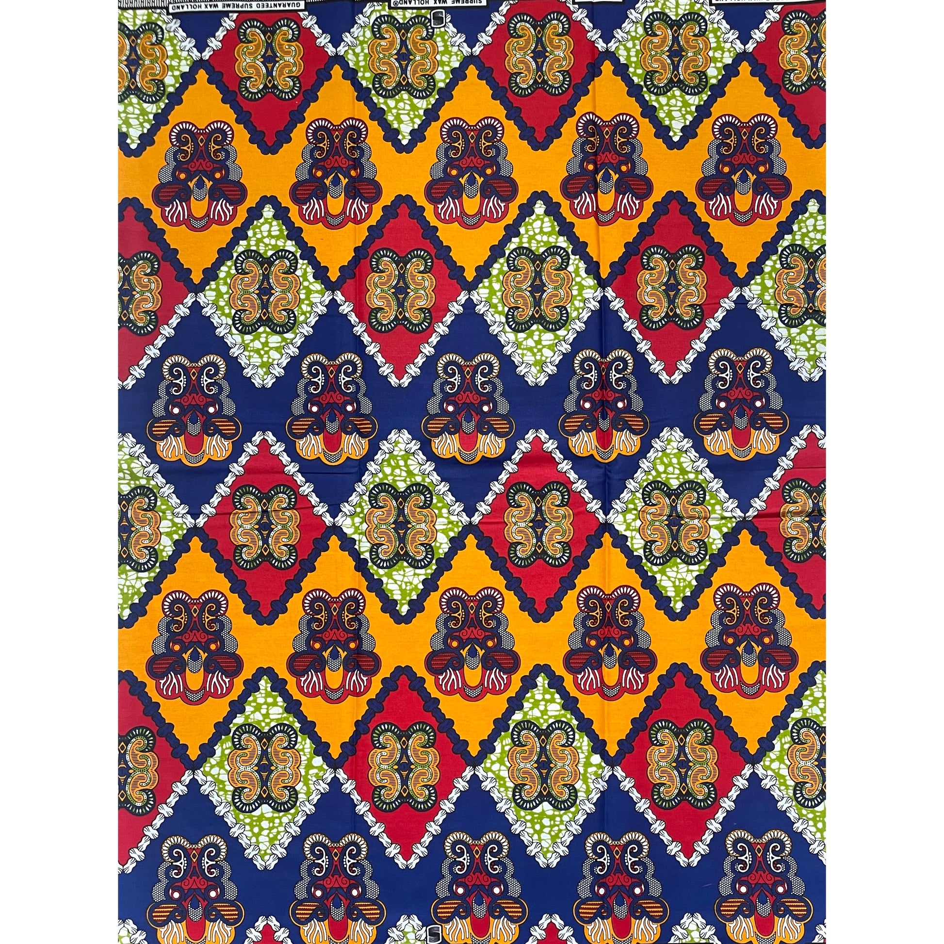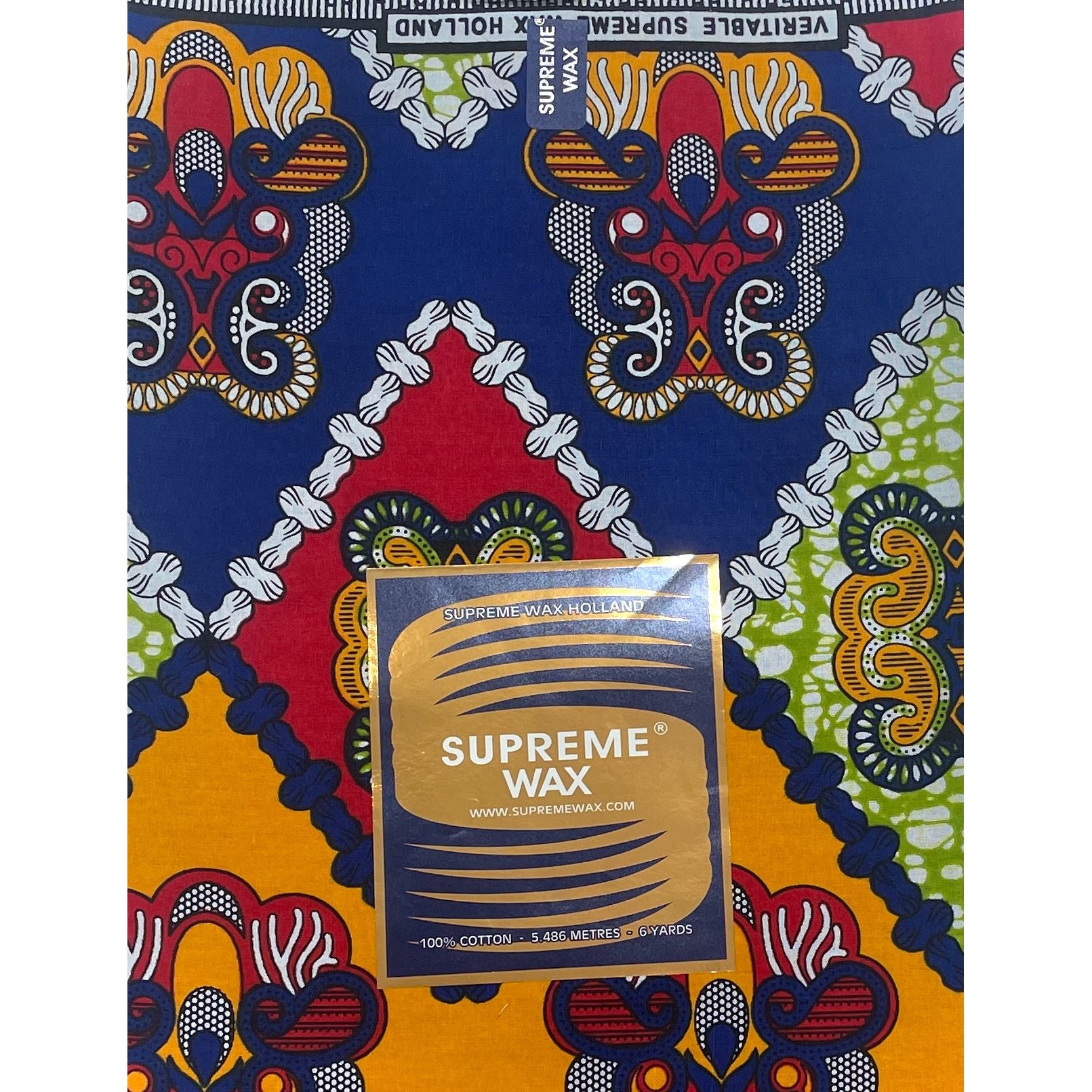 Tissu Pagne Africain - 6 Yards 100% Coton - SUPREME WAX - BLEU / ROUGE / ORANGE