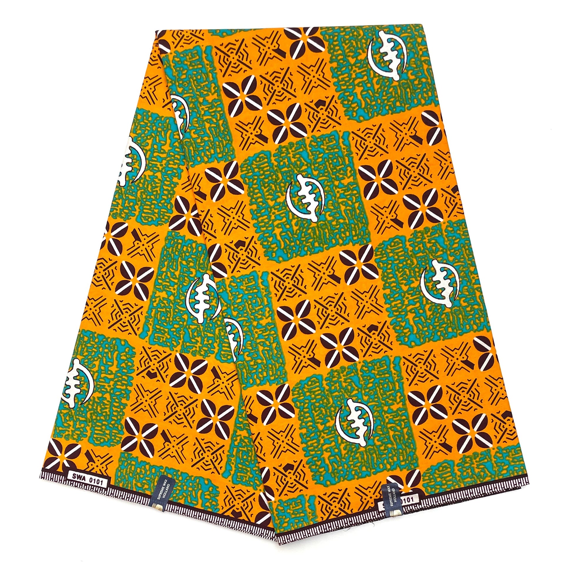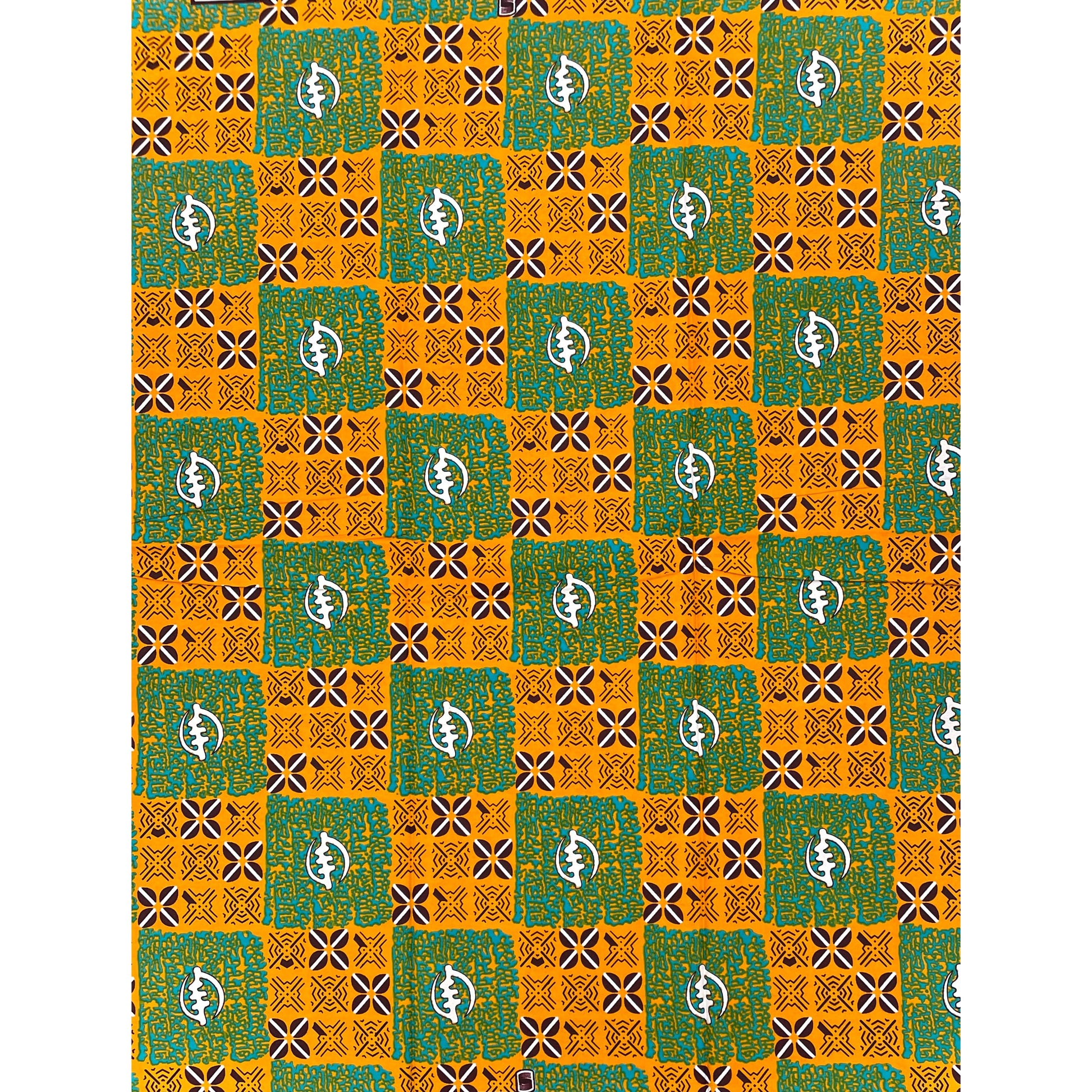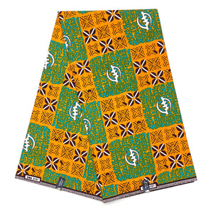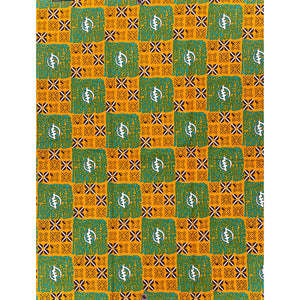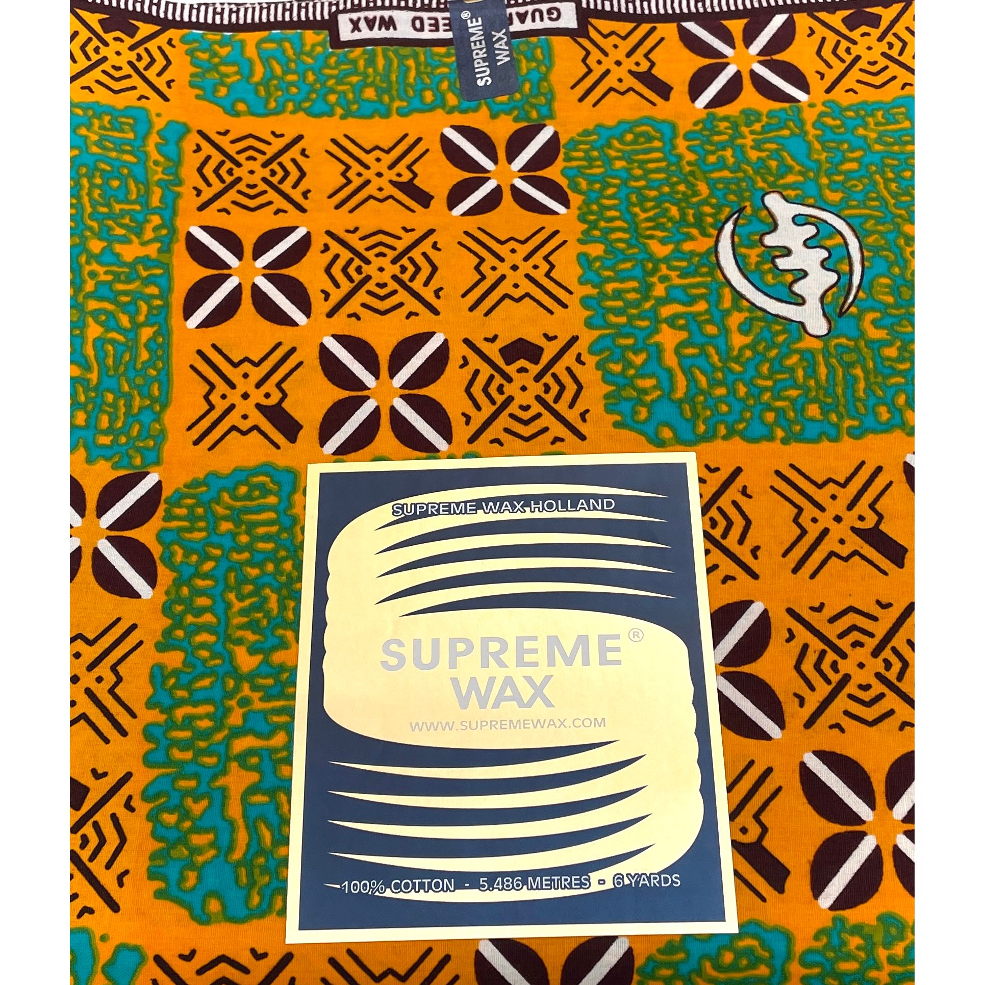 Tissu Pagne Africain - 6 Yards 100% Coton - SUPREME WAX - ORANGE / VERT