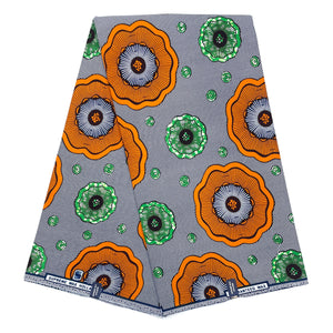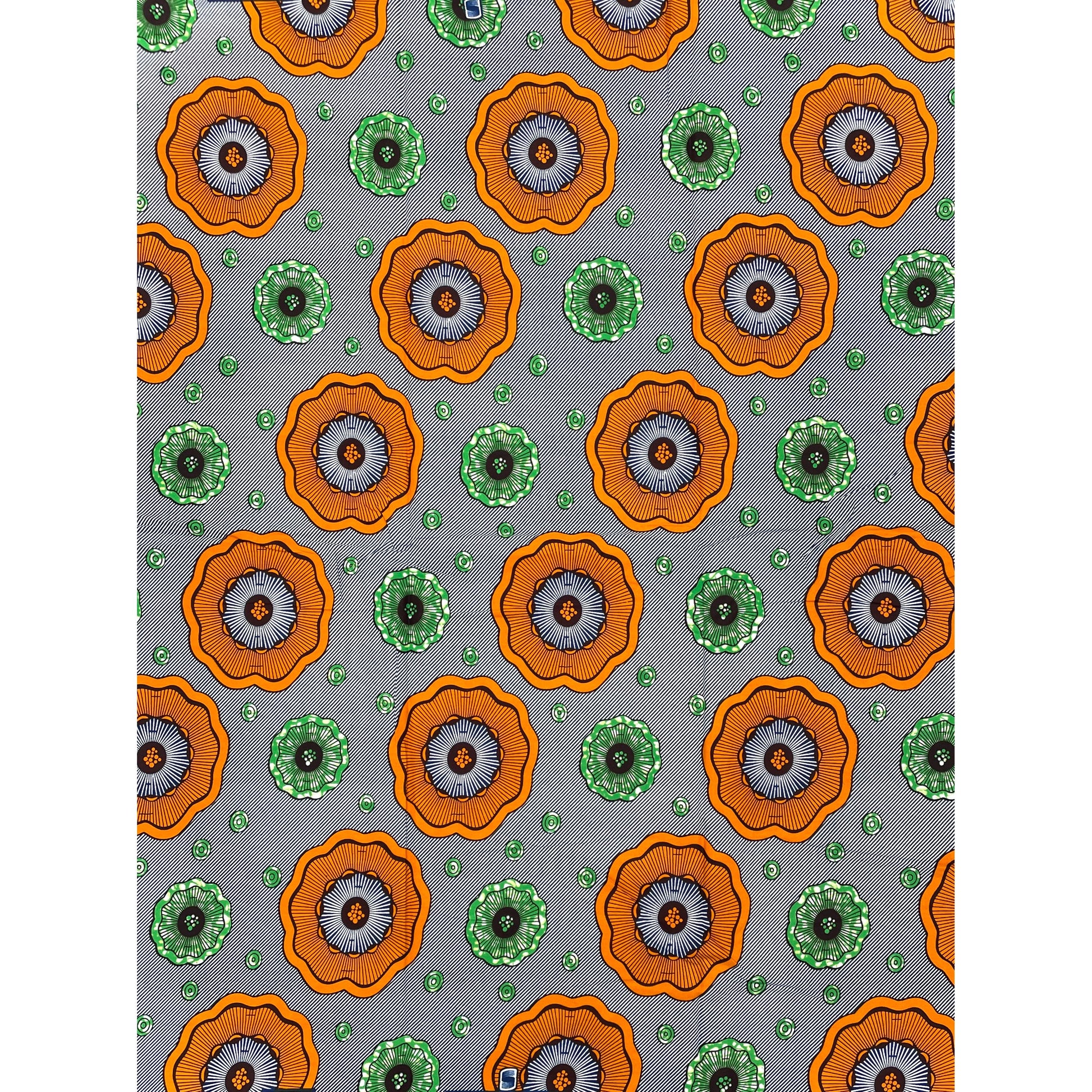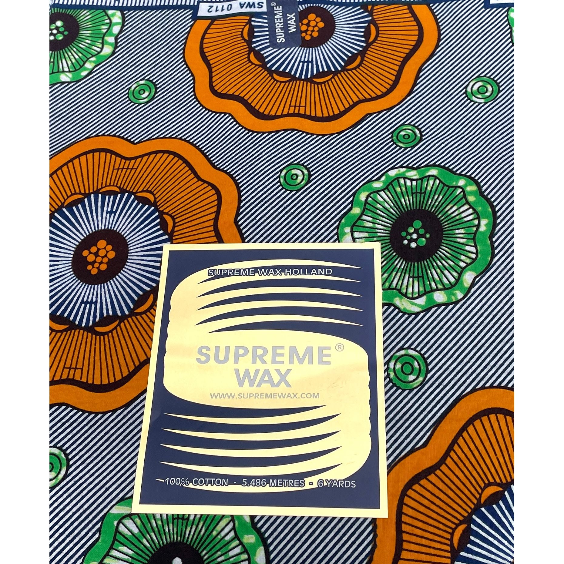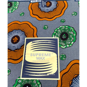Tissu Pagne Africain - 6 Yards 100% Coton - SUPREME WAX - ORANGE / VERT