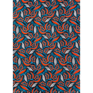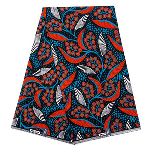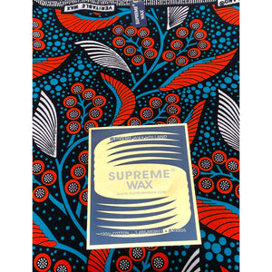 Tissu Pagne Africain - 6 Yards 100% Coton - SUPREME WAX - ORANGE / BLEU