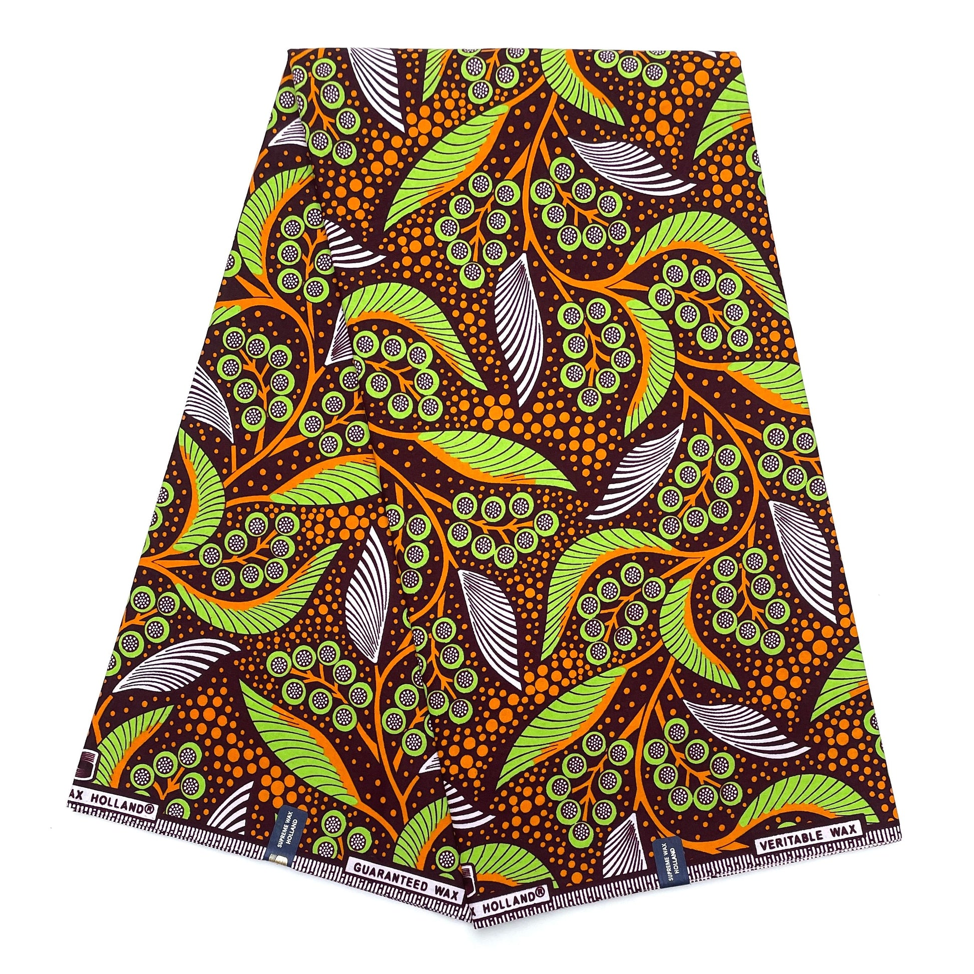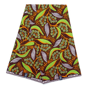 Tissu Pagne Africain - 6 Yards 100% Coton - SUPREME WAX - VERT / MARRON