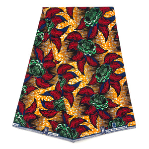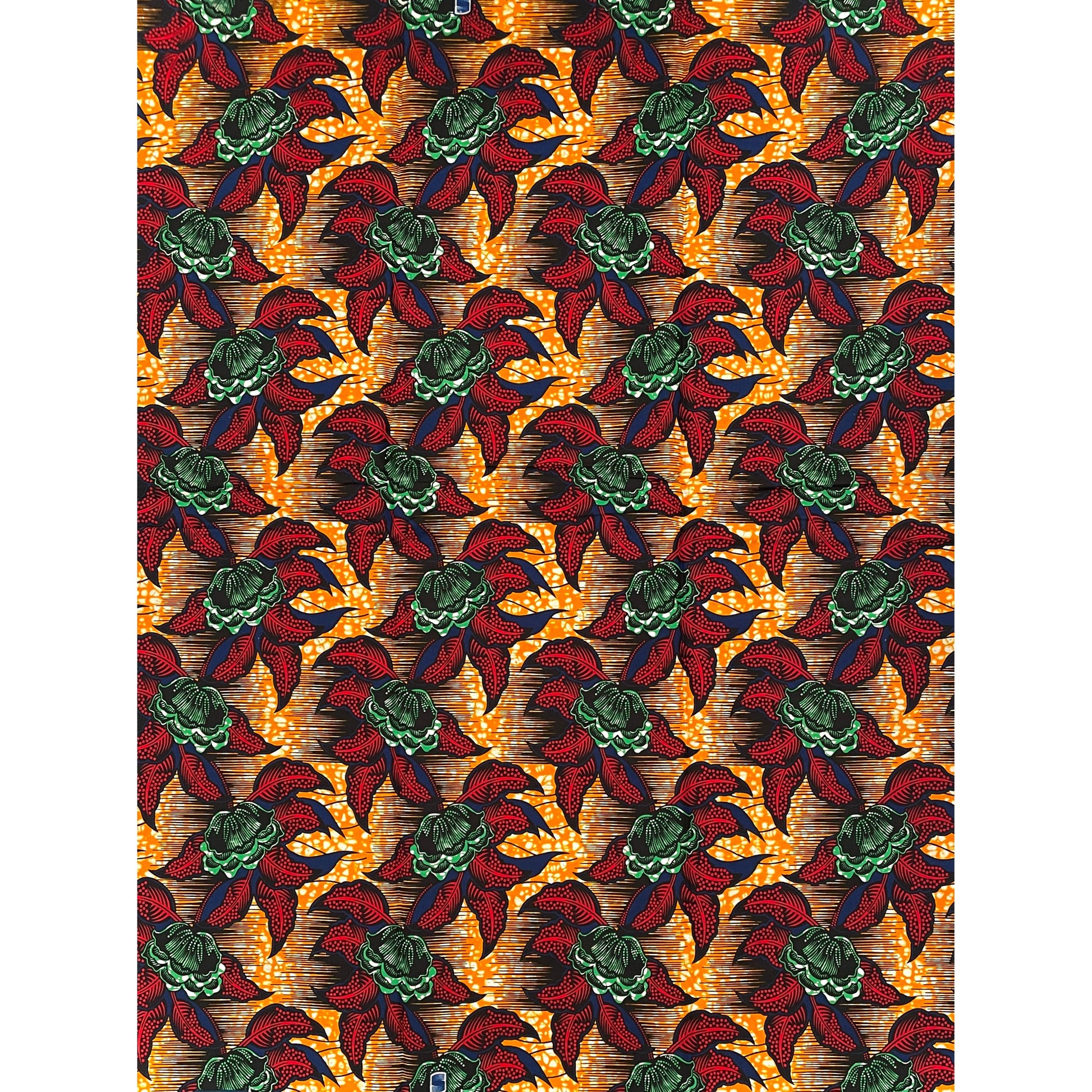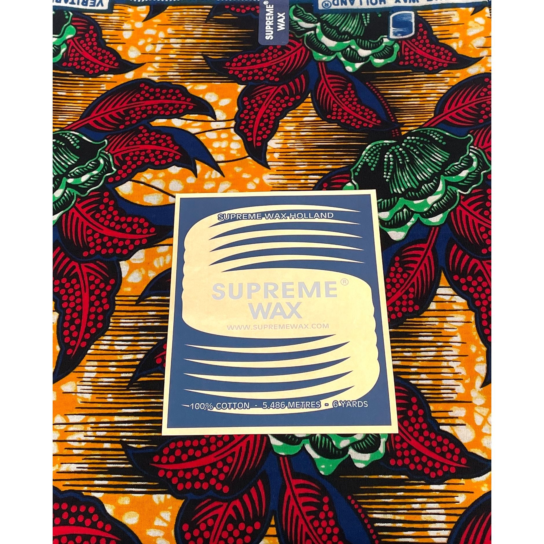 Tissu Pagne Africain - 6 Yards 100% Coton - SUPREME WAX - ROUGE / ORANGE